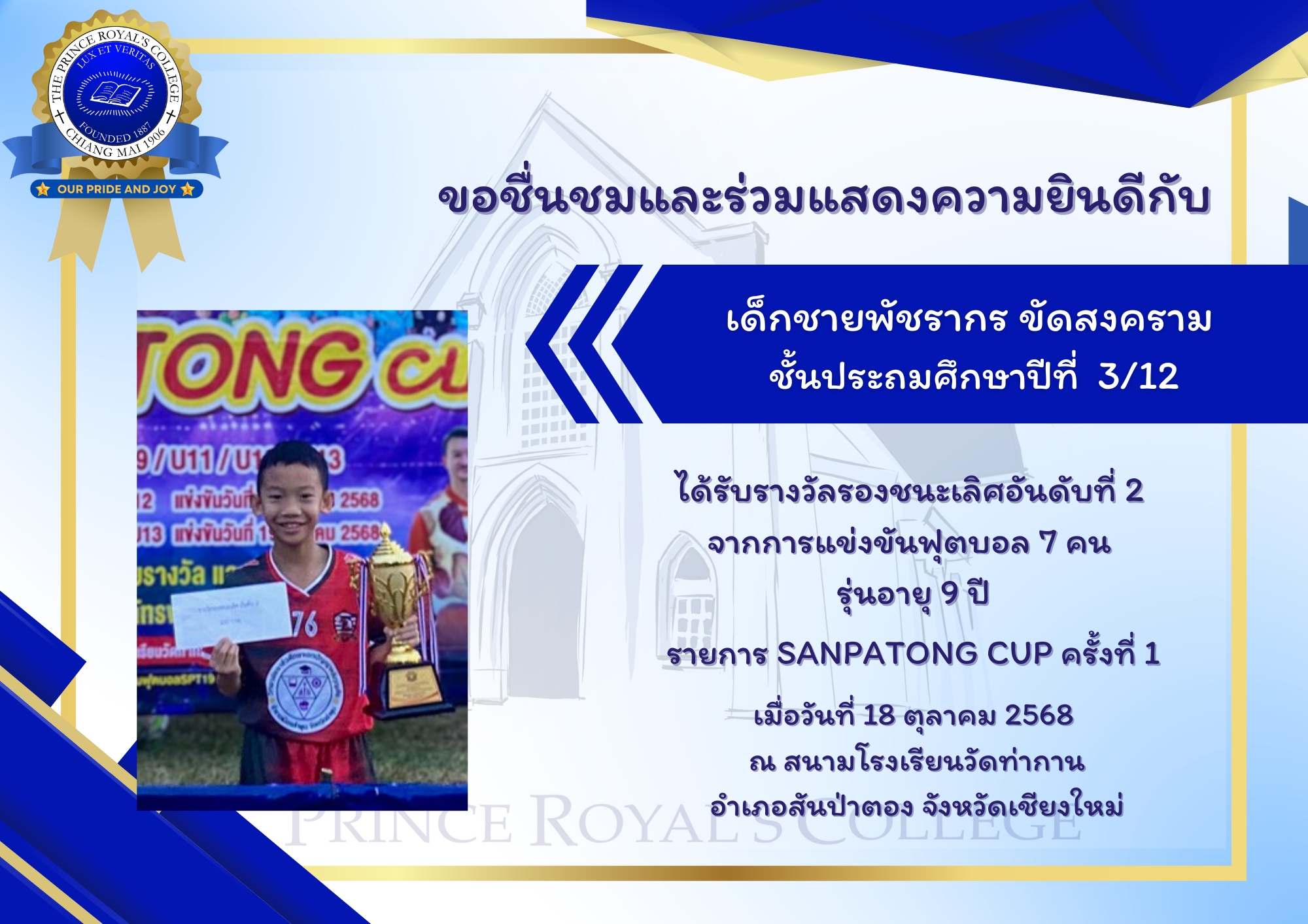 ขอชื่นชมและร่วมแสดงความยินดีกับเด็กชายพัชรากร ขัดสงคราม นักเรียนชั้นประถมศึกษาปีที่ 3/12