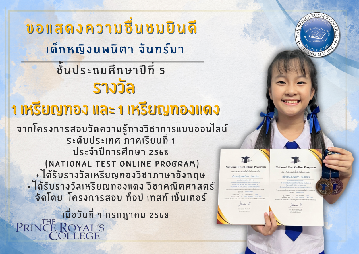 จากโครงการสอบวัดความรู้ทางวิชาการแบบออนไลน์ระดับประเทศ ภาคเรียนที่ 1 ประจำปีการศึกษา 2568 (National Test Online Program)