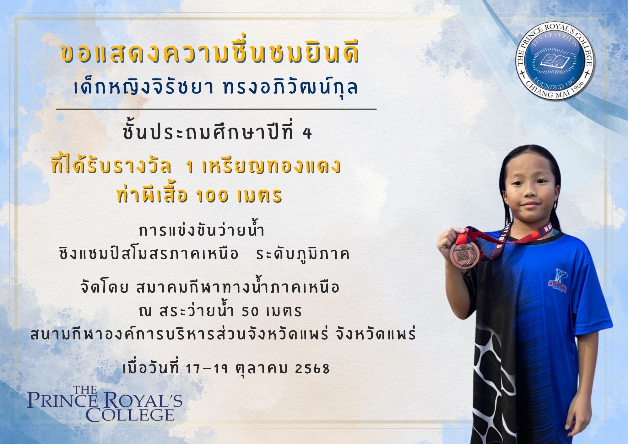 จากการแข่งขันว่ายน้ำชิงแชมป์สโมสรภาคเหนือ ระดับภูมิภาค