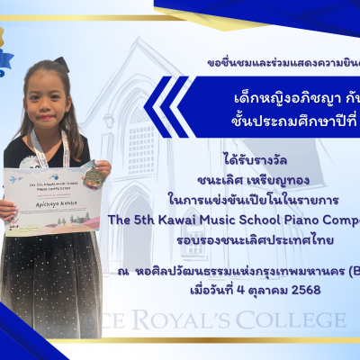 จากการแข่งขันเปียโนในรายการ The 5th Kawai Music School Piano Competition รอบรองชนะเลิศประเทศไทย