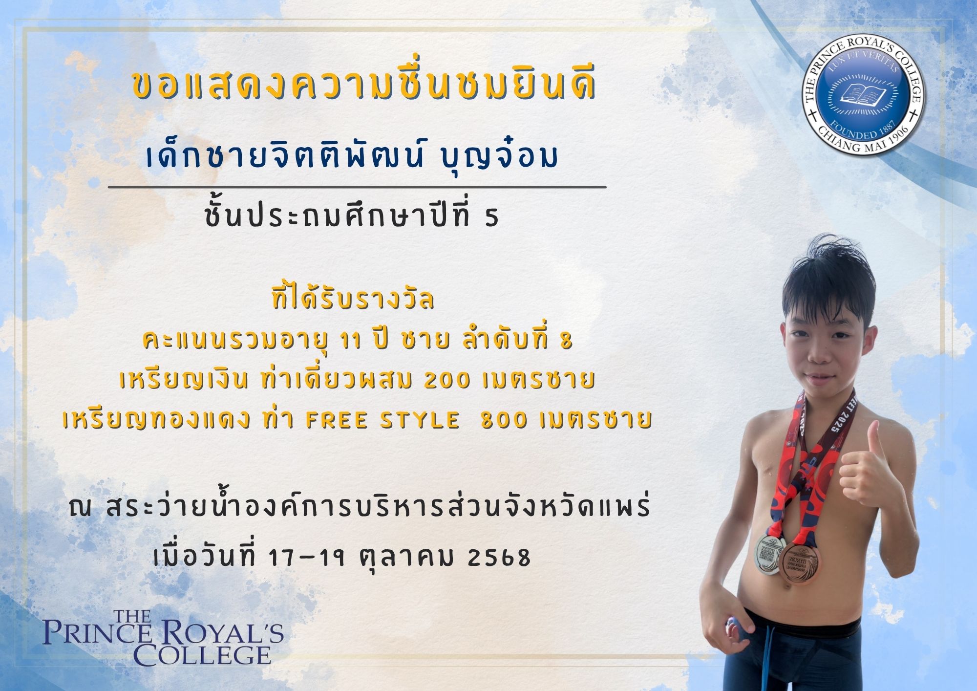 สถานที่จัดการแข่งขัน ณ สระว่ายน้ำองค์การบริหารส่วนจังหวัดแพร่