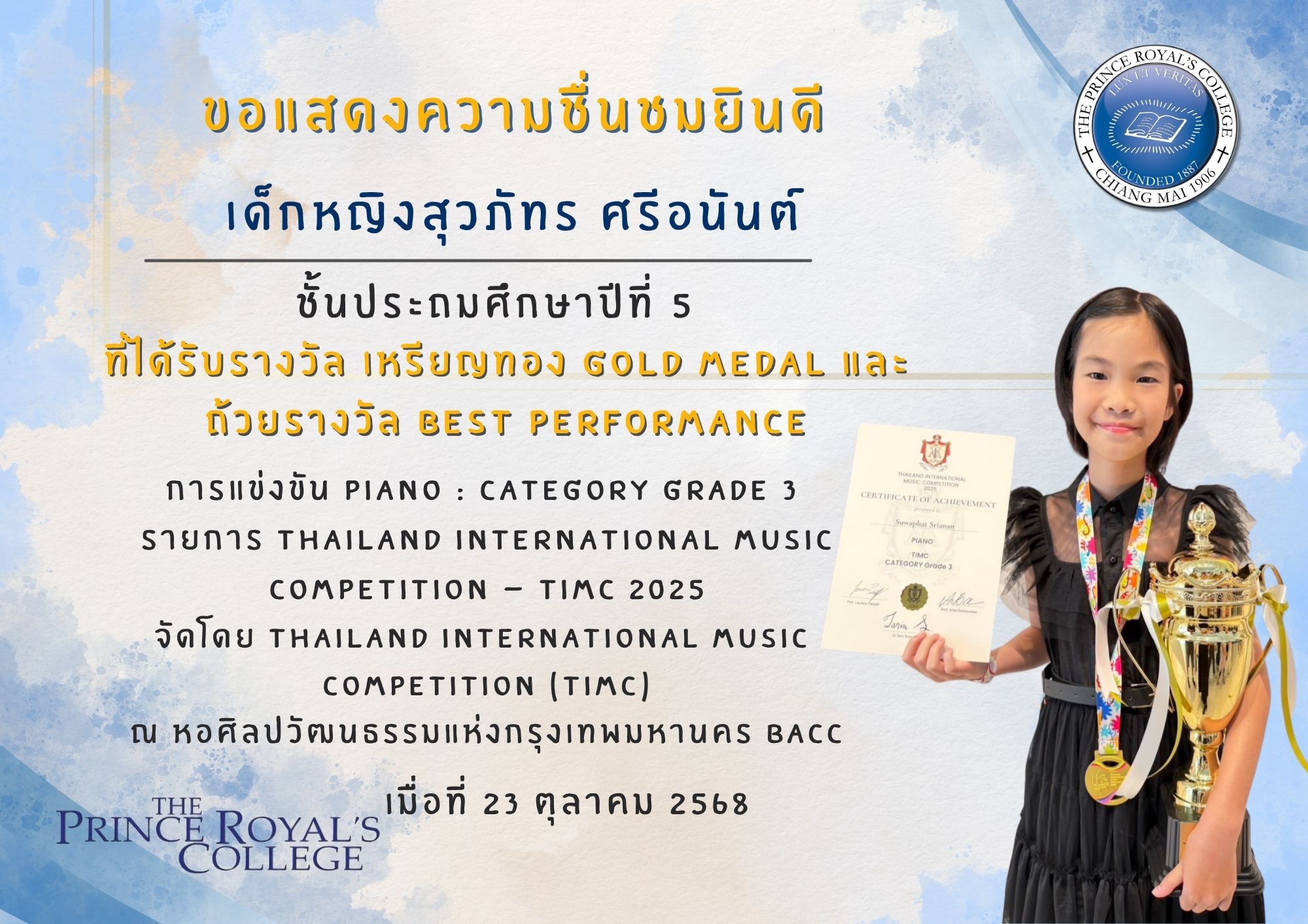 ที่ได้รับรางวัล เหรียญทอง🏅 Gold Medal และถ้วยรางวัล 🏆 Best Performance