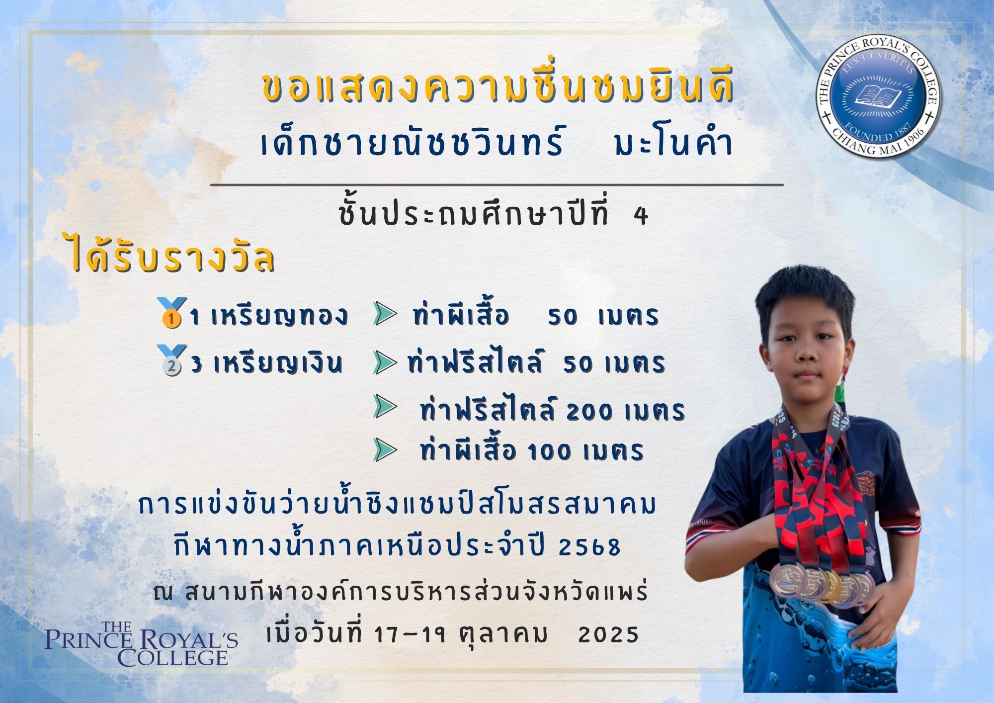 จากการแข่งขันว่ายน้ำชิงแชมป์สโมสรสมาคมกีฬาทางน้ำภาคเหนือประจำปี 2568