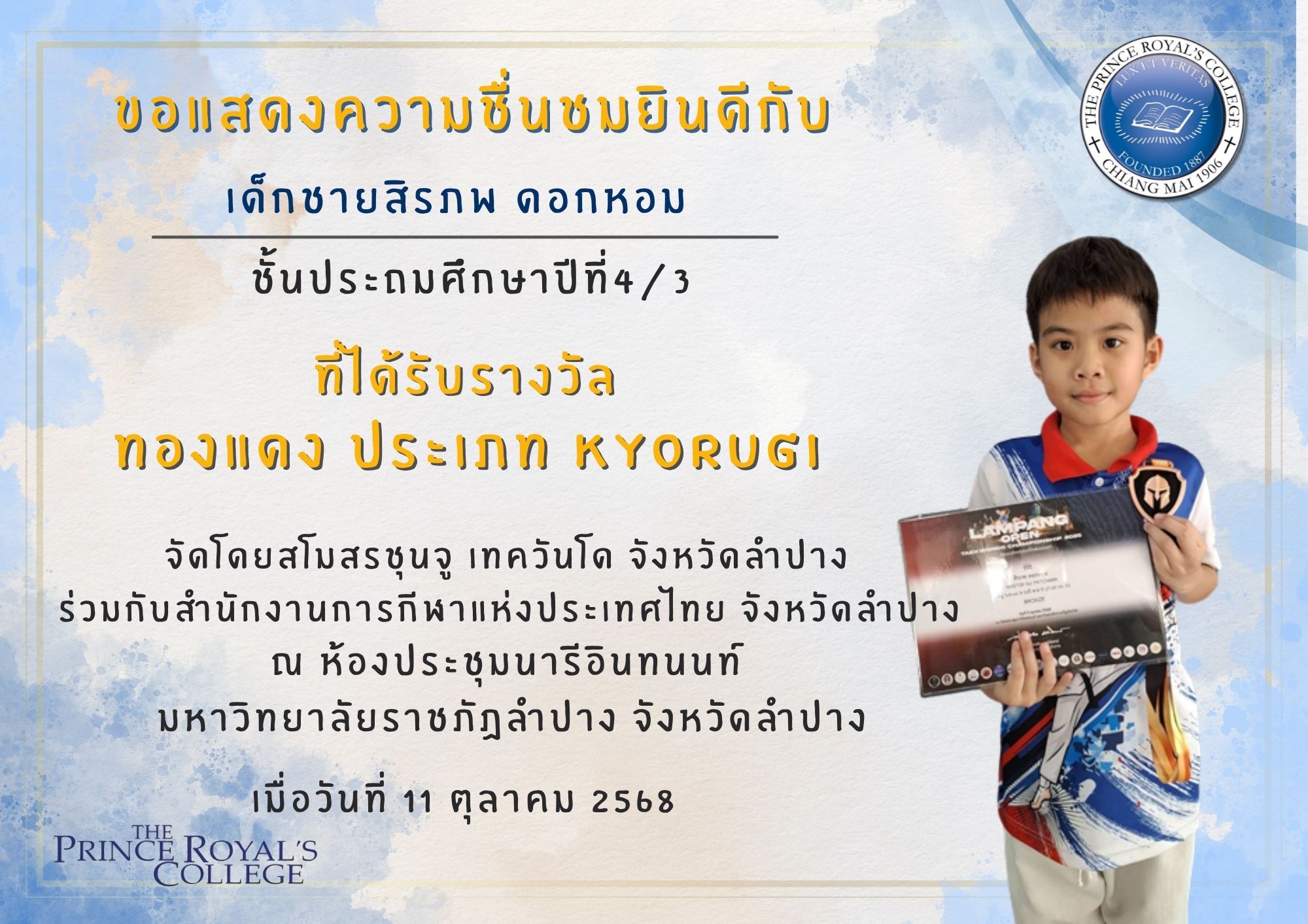 เด็กชายสิรภพ ดอกหอม แข่งขันกีฬาเทควันโด LAMPANG OPEN TAEKWONDO CHAMPIONSHIP 2025