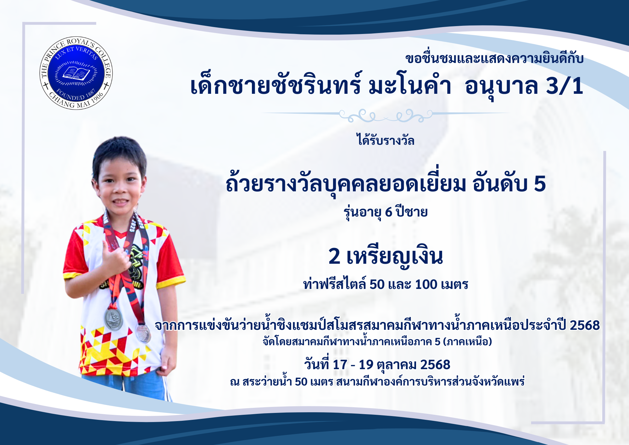 💠ถ้วยรางวัลบุคคลยอดเยี่ยม อันดับ 5     รุ่นอายุ 6 ปีชาย