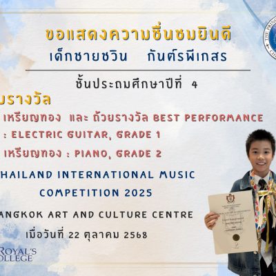 ที่ได้รับรางวัล : เหรียญทอง และถ้วยรางวัล Best Performance