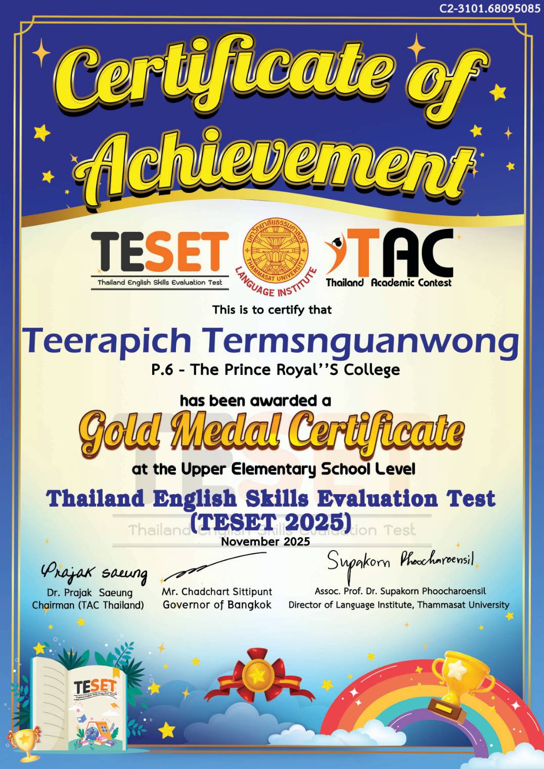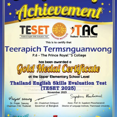 ที่ได้รับรางวัลเหรียญทอง วิชา ภาษาอังกฤษ ระดับประเทศ