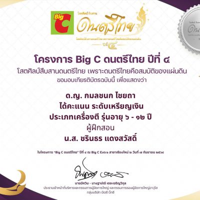 ขอชื่นชมและร่วมแสดงความยินดีกับ เด็กหญิงกมลชนก ไชยถา ชั้นประถมศึกษาปีที่ 2/10 ได้รับรางวัล เหรียญเงิน ประเภทเครื่องตี รุ่นอายุ 6-12 ปี จากการแข่งขันโครงการ Big C ดนตรีไทย ปีที่ 4 โสตศิลป์สืบสานดนตรีไทย เพราะดนตรีไทยคือสมบัติของแผ่นดินณ Big C Extra สาขาเชียงใหม่ 2 เมื่อวันที่ 7 กันยายน พ.ศ.2568