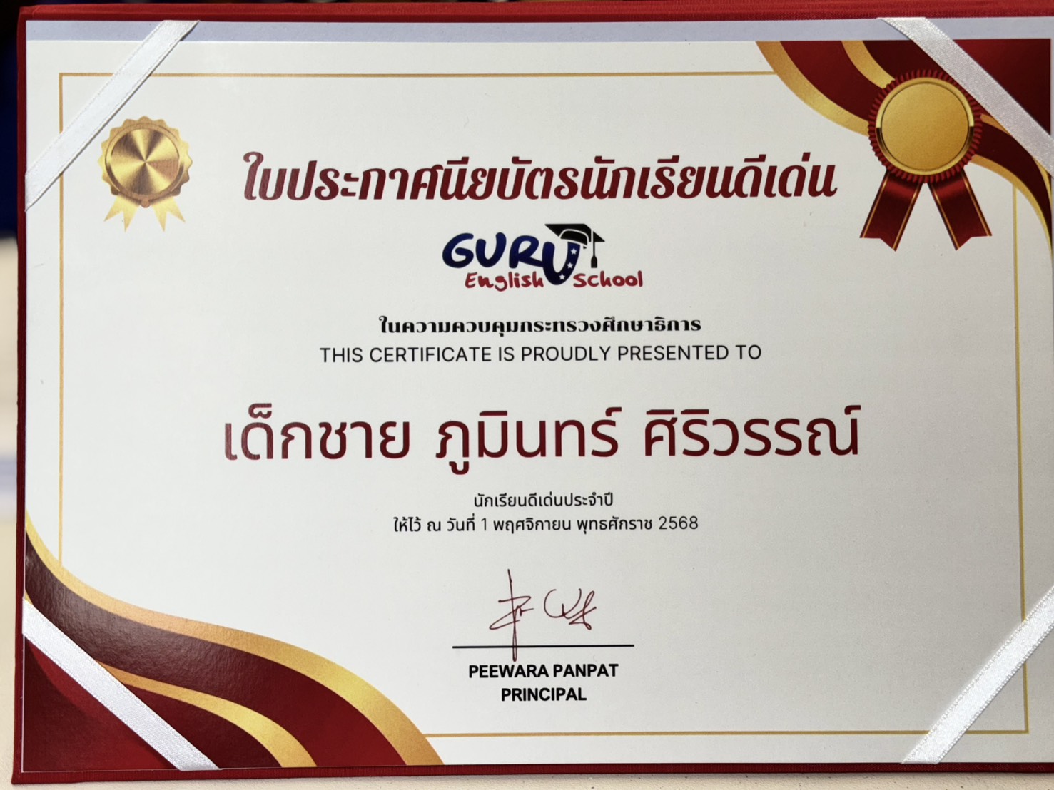 💠 นักเรียนดีเด่น Guru English School ในความควบคุมกระทรวงศึกษาธิการ