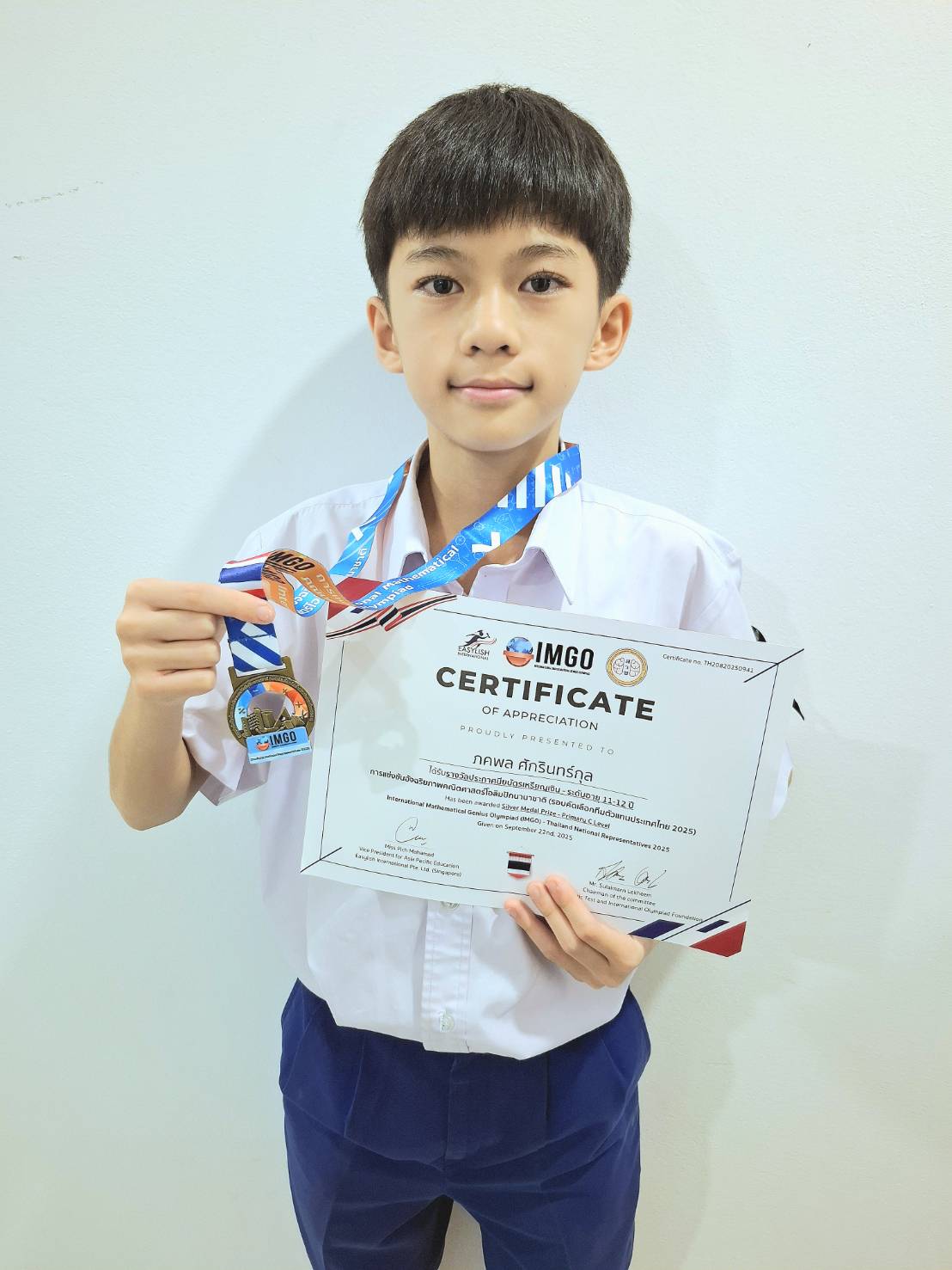 ได้รับรางวัลเหรียญเงิน – ระดับอายุ 11-12 ปี (PrimaryC)