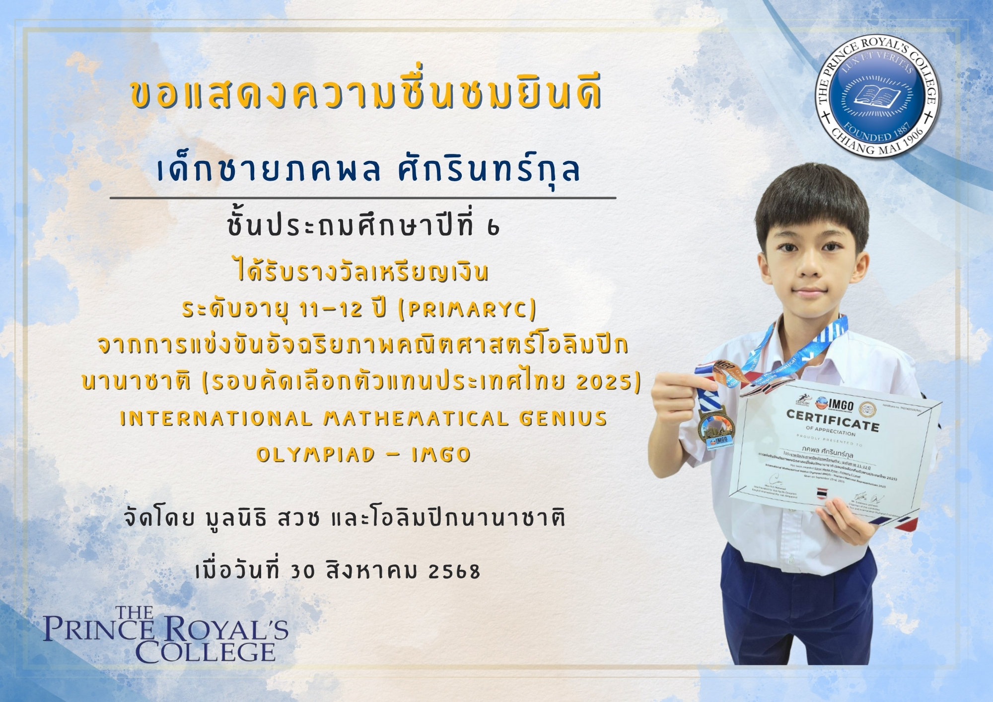 จากการแข่งขันอัจฉริยภาพคณิตศาสตร์โอลิมปิกนานาชาติ (รอบคัดเลือกตัวแทนประเทศไทย 2025)