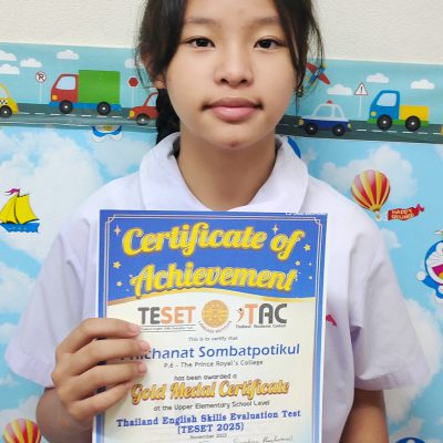 ได้รับรางวัลเกียรติบัตรเหรียญทอง Gold Medal Certificate ระดับชั้นประถมศึกษาตอนปลาย