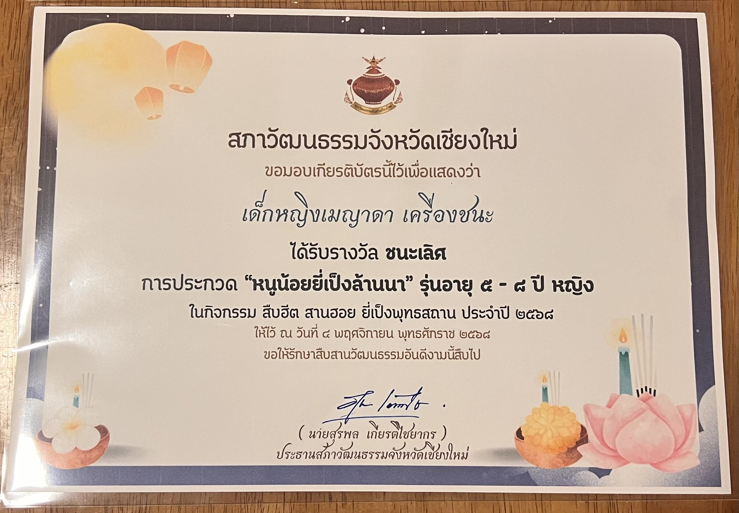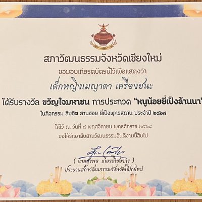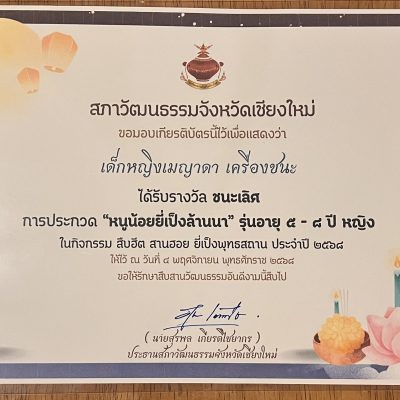 💠ชนะเลิศ การประกวด “หนูน้อยยี่เป็งล้านนา” รุ่นอายุ 5 – 8 ปี หญิง