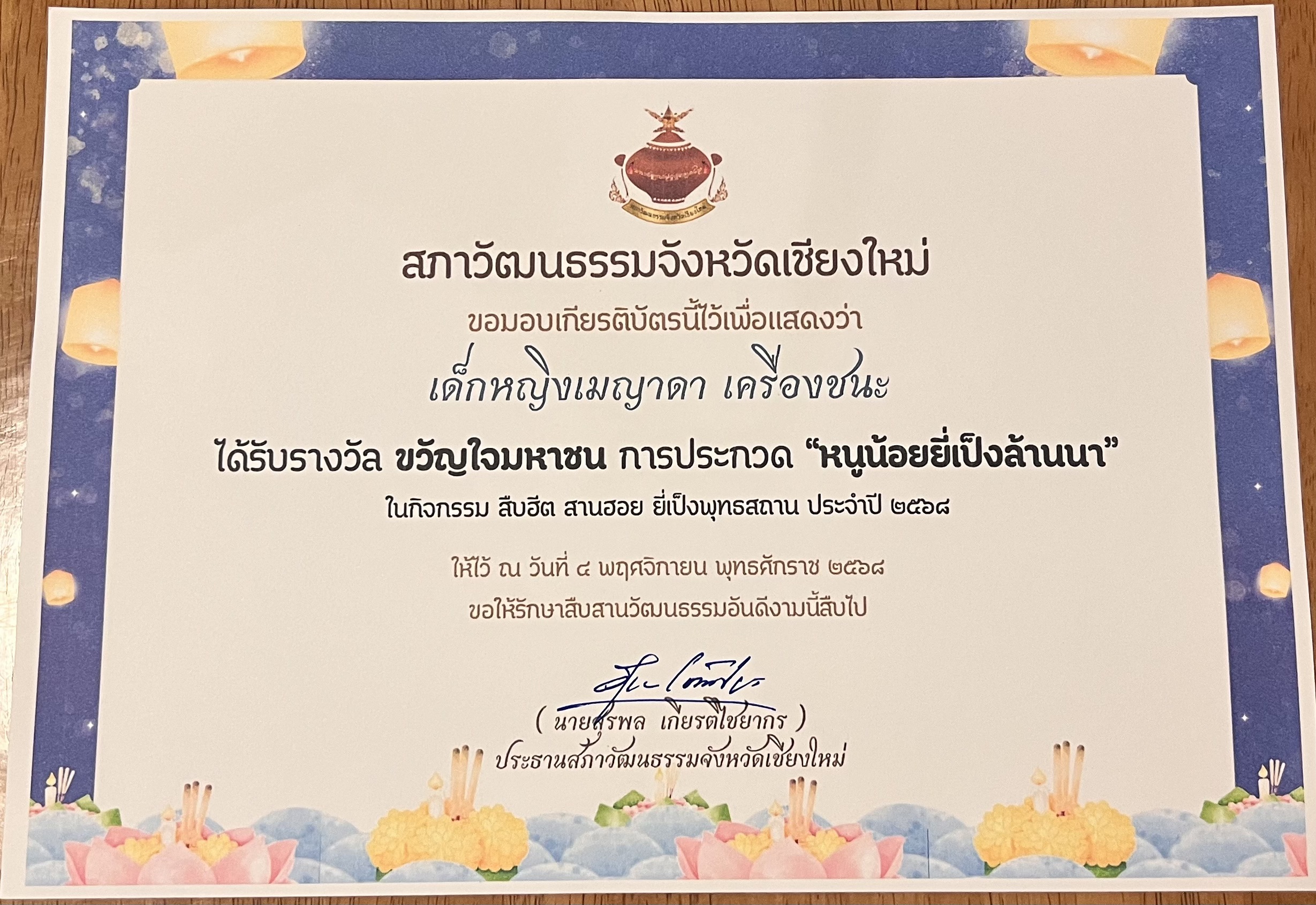 ขอชื่นชมและแสดงความยินดีกับ 🔅เด็กหญิงเมญาดา เครื่องชนะ ชั้นอนุบาล 3/13🔅