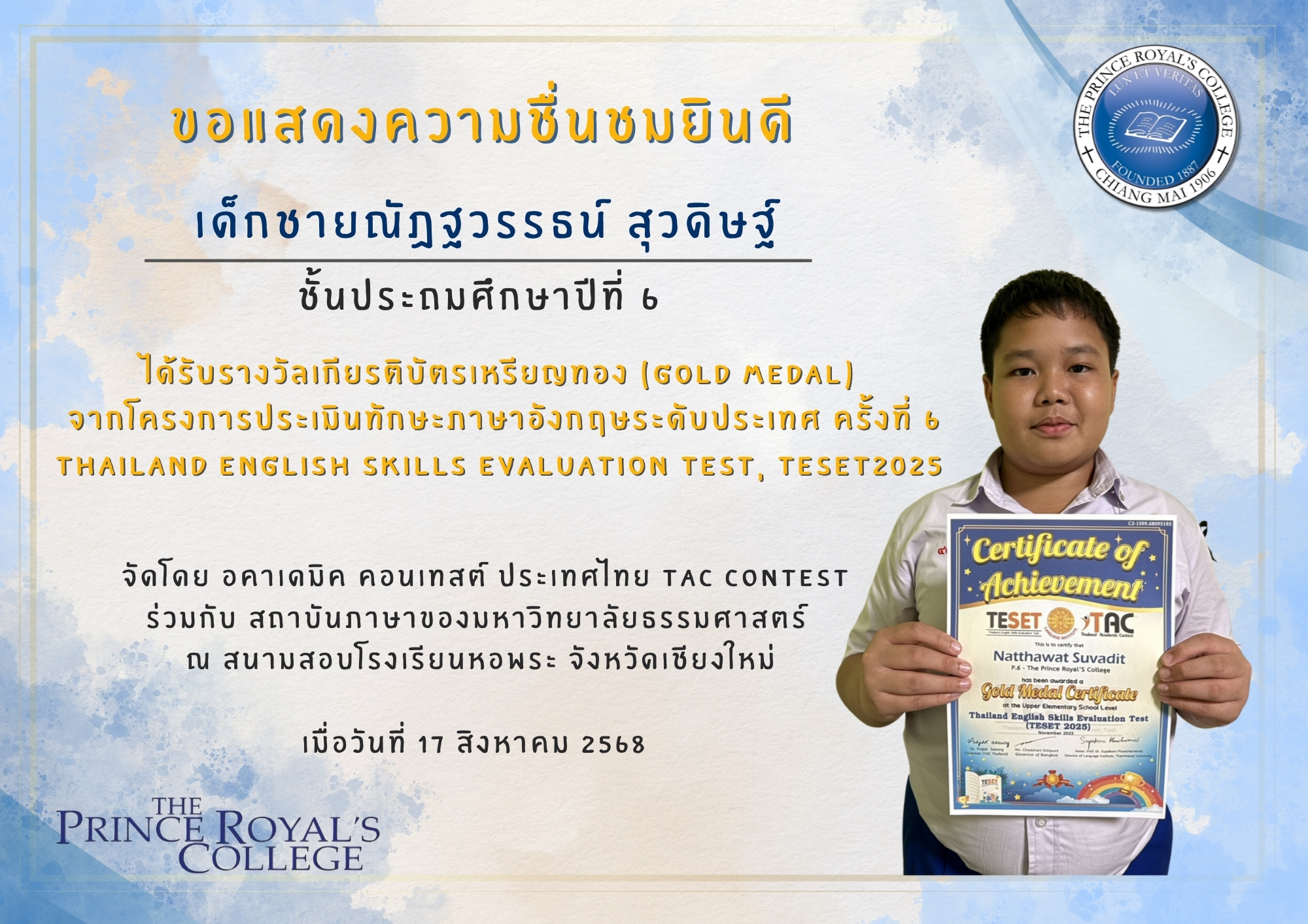 จากโครงการประเมินทักษะภาษาอังกฤษระดับประเทศ ครั้งที่ 6 Thailand English Skills Evaluation Test, TESET2025