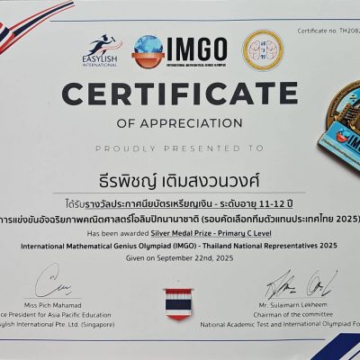 จัดโดย มูลนิธิโครงการสอบวัดทักษะวิชาการ, International Mathematical Genius Olympiad (IMGO) และ Easylish International
