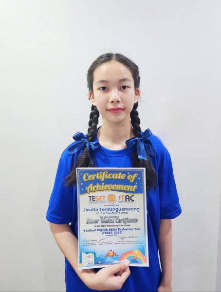 เด็กหญิงจิณัฐตา เติมสงวนวงศ์ นักเรียนระดับชั้นประถมศึกษาปีที่ 5 ได้รับรางวัล ได้รับรางวัล เหรียญเงิน วิชาภาษาอังกฤษ ระดับประเทศ