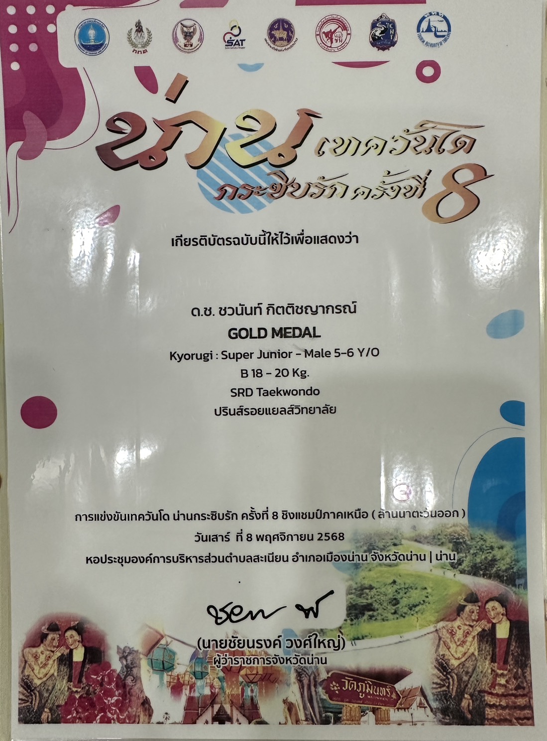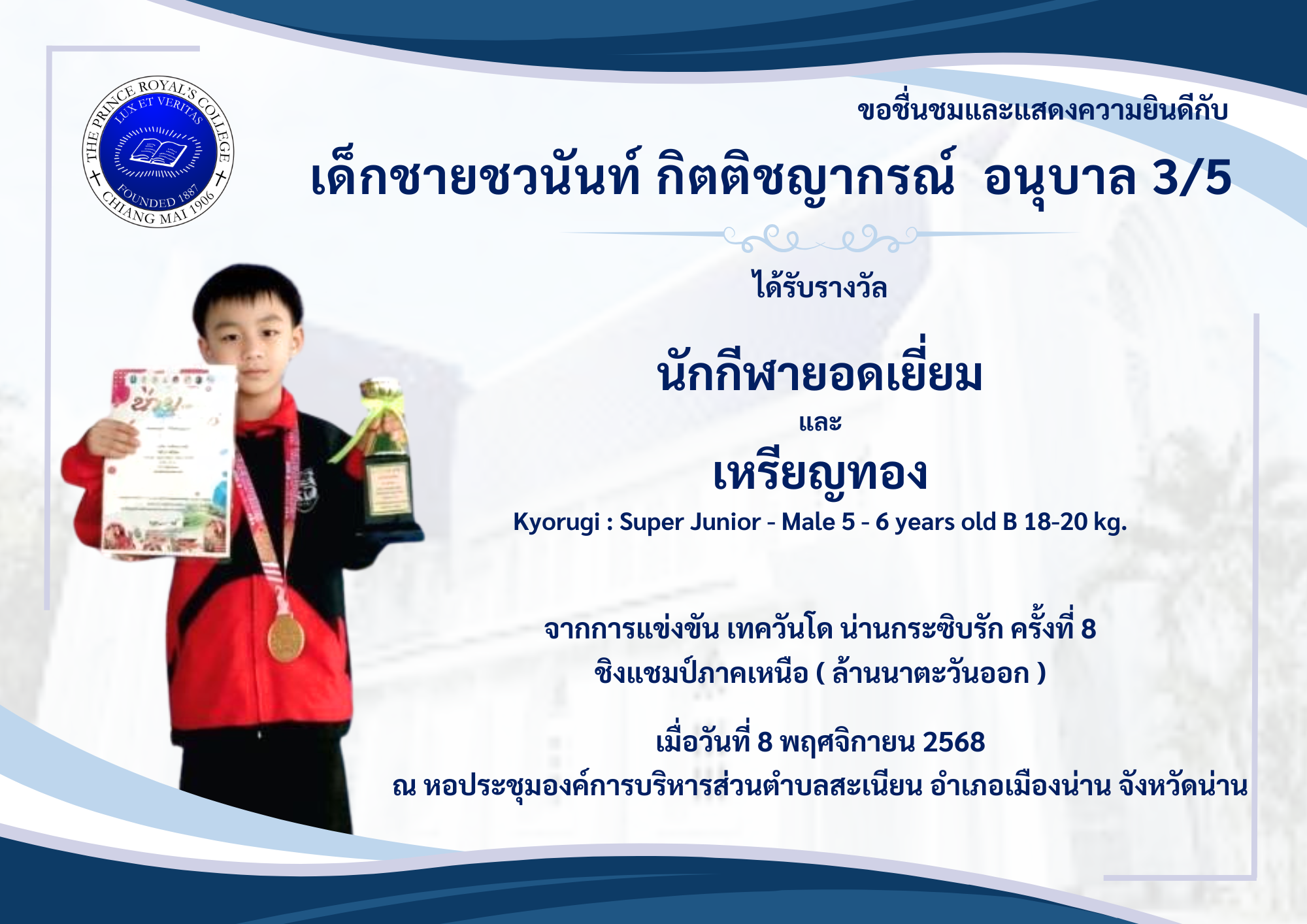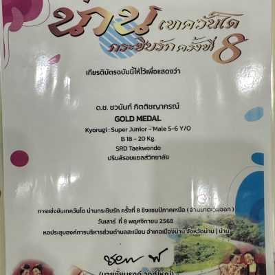 จากการแข่งขัน เทควันโด น่านกระซิบรัก ครั้งที่ 8 ชิงแชมป์ภาคเหนือ ( ล้านนาตะวันออก )