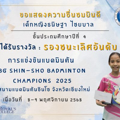 ที่ได้รับรางวัล : รองชนะเลิศอันดับ 2 หญิงคู่ 10 ปี