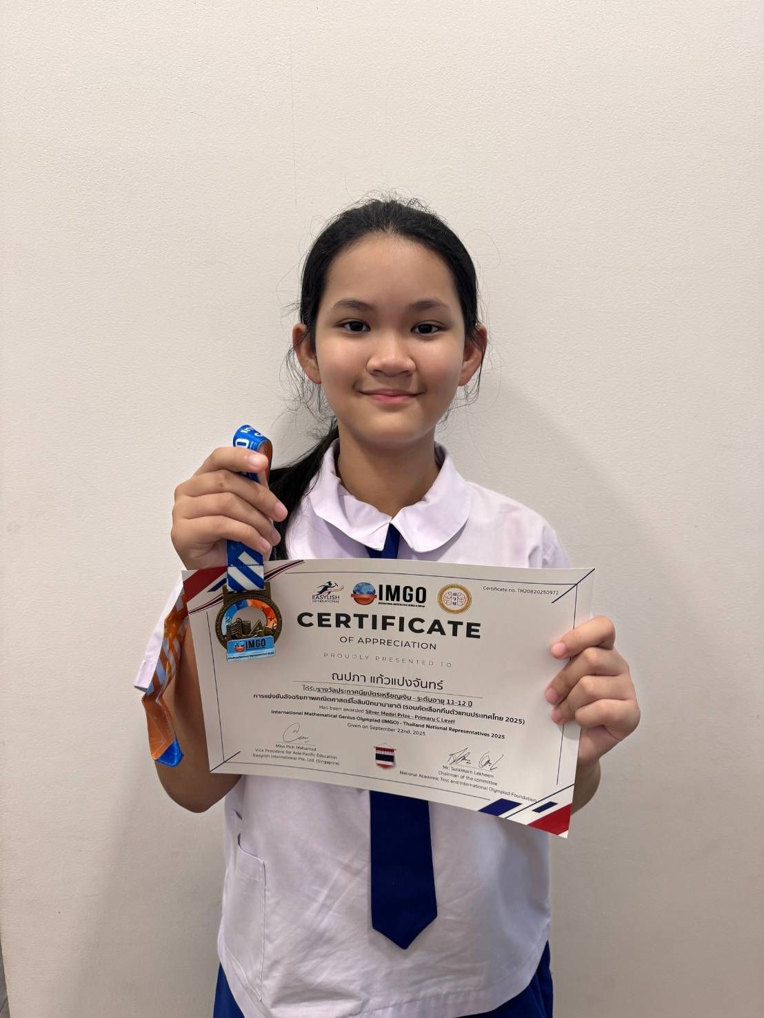 ได้รับรางวัลประกาศนียบัตรเหรียญเงิน ระดับอายุ11-12ปี