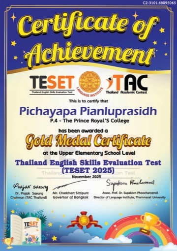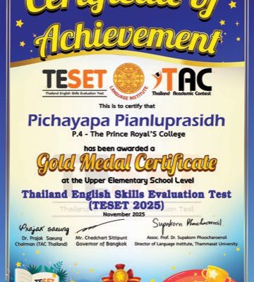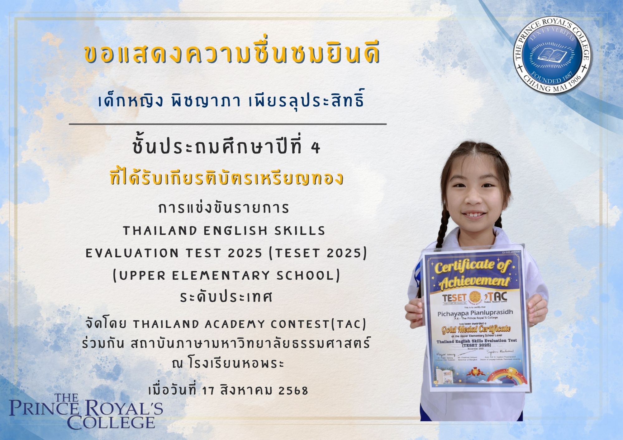 จากการแข่งขันรายการ Thailand English Skills Evaluation Test 2025 (TESET 2025) Upper elementary school ระดับประเทศ