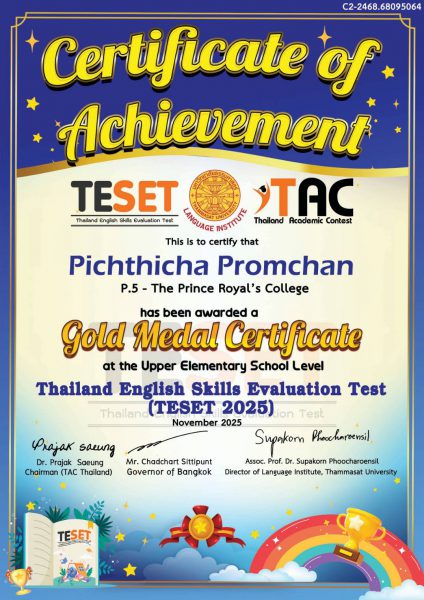ที่ได้รับรางวัล เกียรติบัตรเหรียญทอง