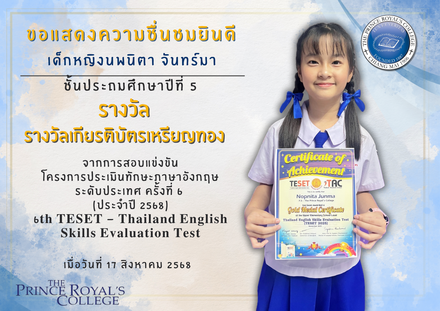 จากสอบแข่งขันโครงการประเมินทักษะภาษาอังกฤษระดับประเทศ ครั้งที่ 6 (ประจำปี 2568)