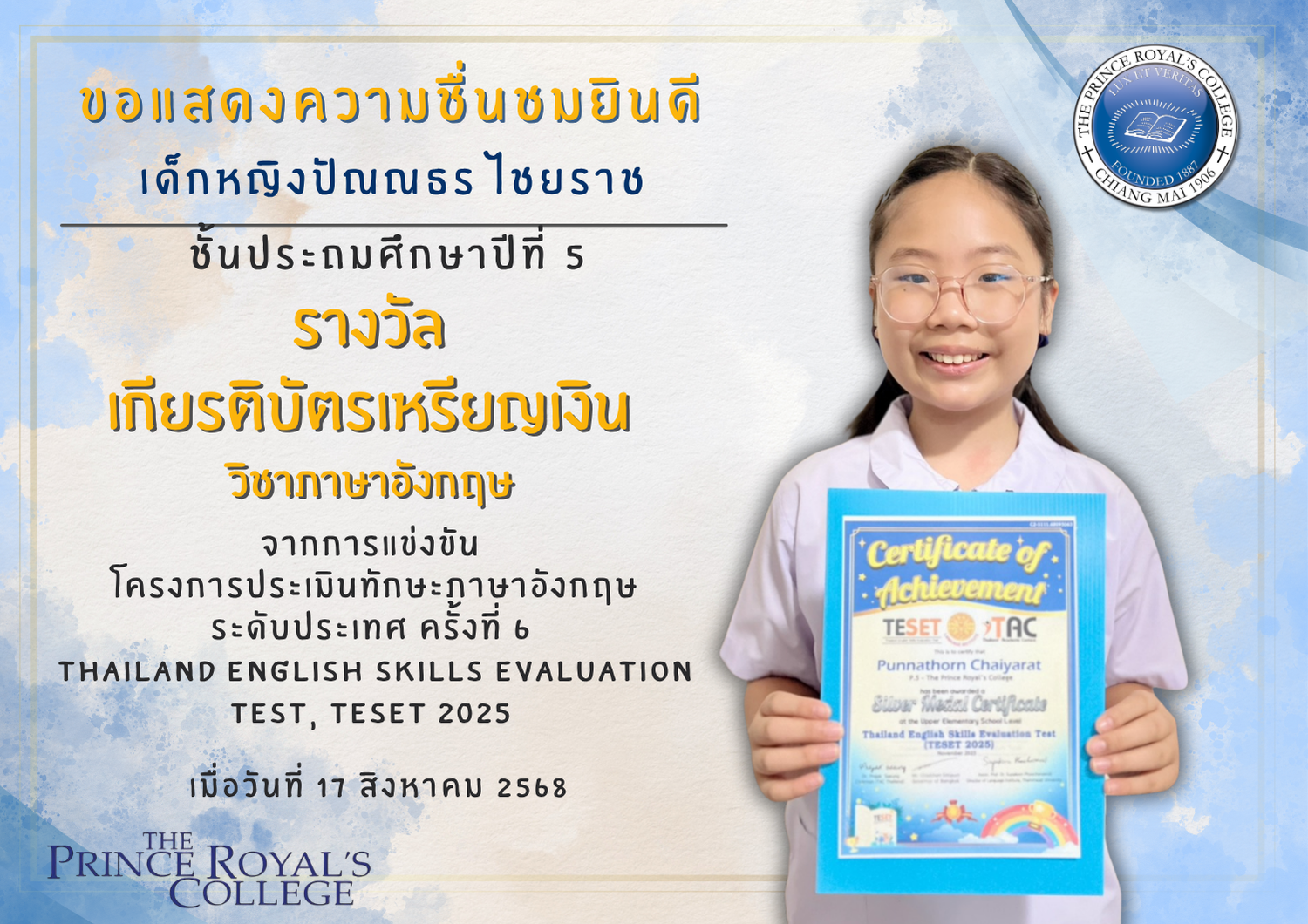 จากการแข่งขัน โครงการประเมินทักษะภาษาอังกฤษระดับประเทศ ครั้งที่ 6 Thailand English Skills Evaluation Test, TESET 2025