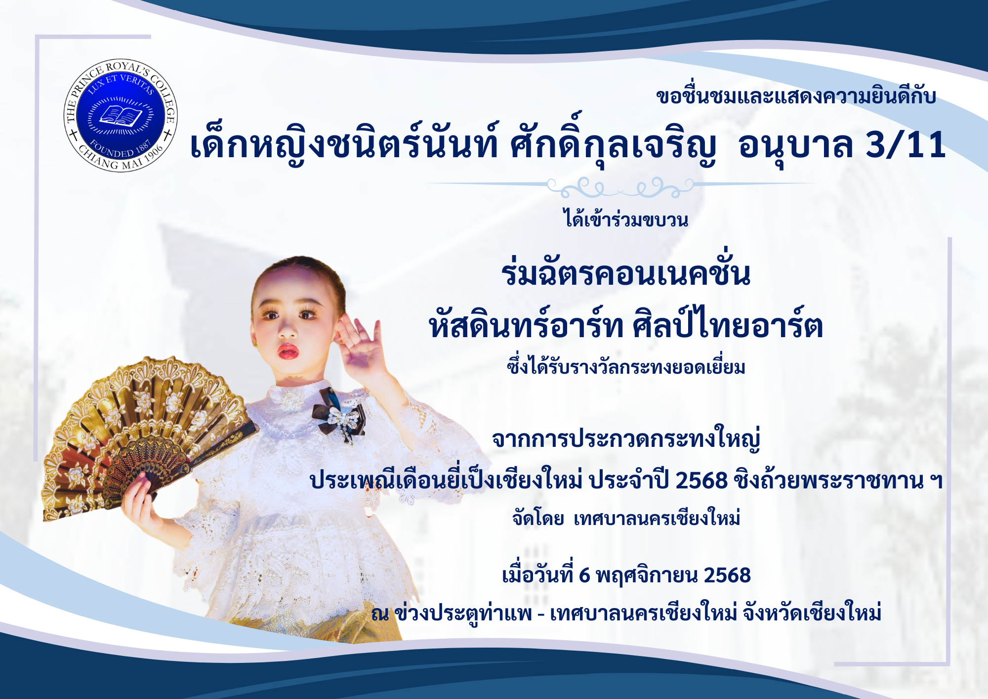 ขอชื่นชมและแสดงความยินดีกับ เด็กหญิงชนิตร์นันท์ ศักดิ์กุลเจริญ