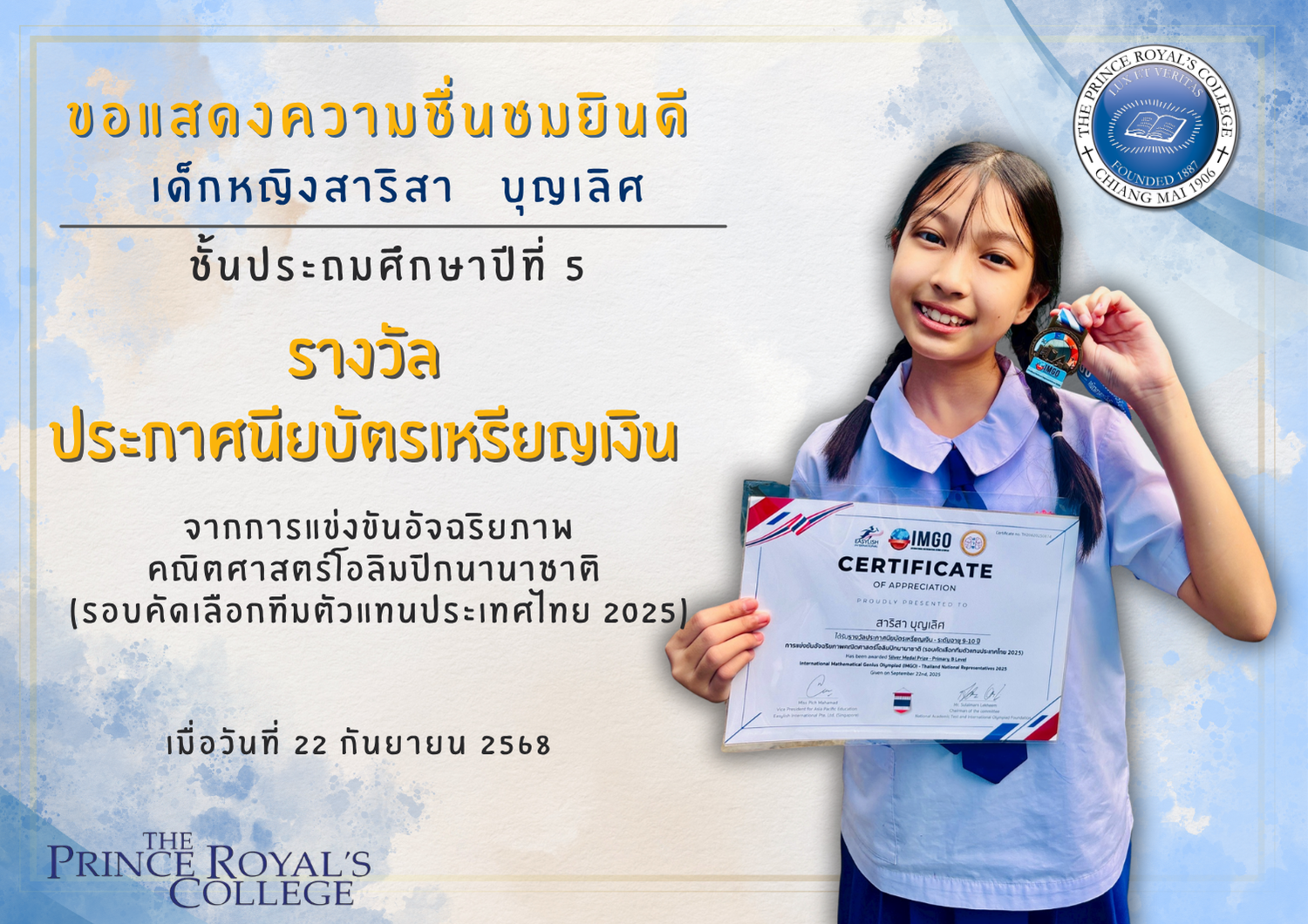 ที่ได้รับ รางวัลประกาศนียบัตรเหรียญเงิน ระดับอายุ 9-10ปี