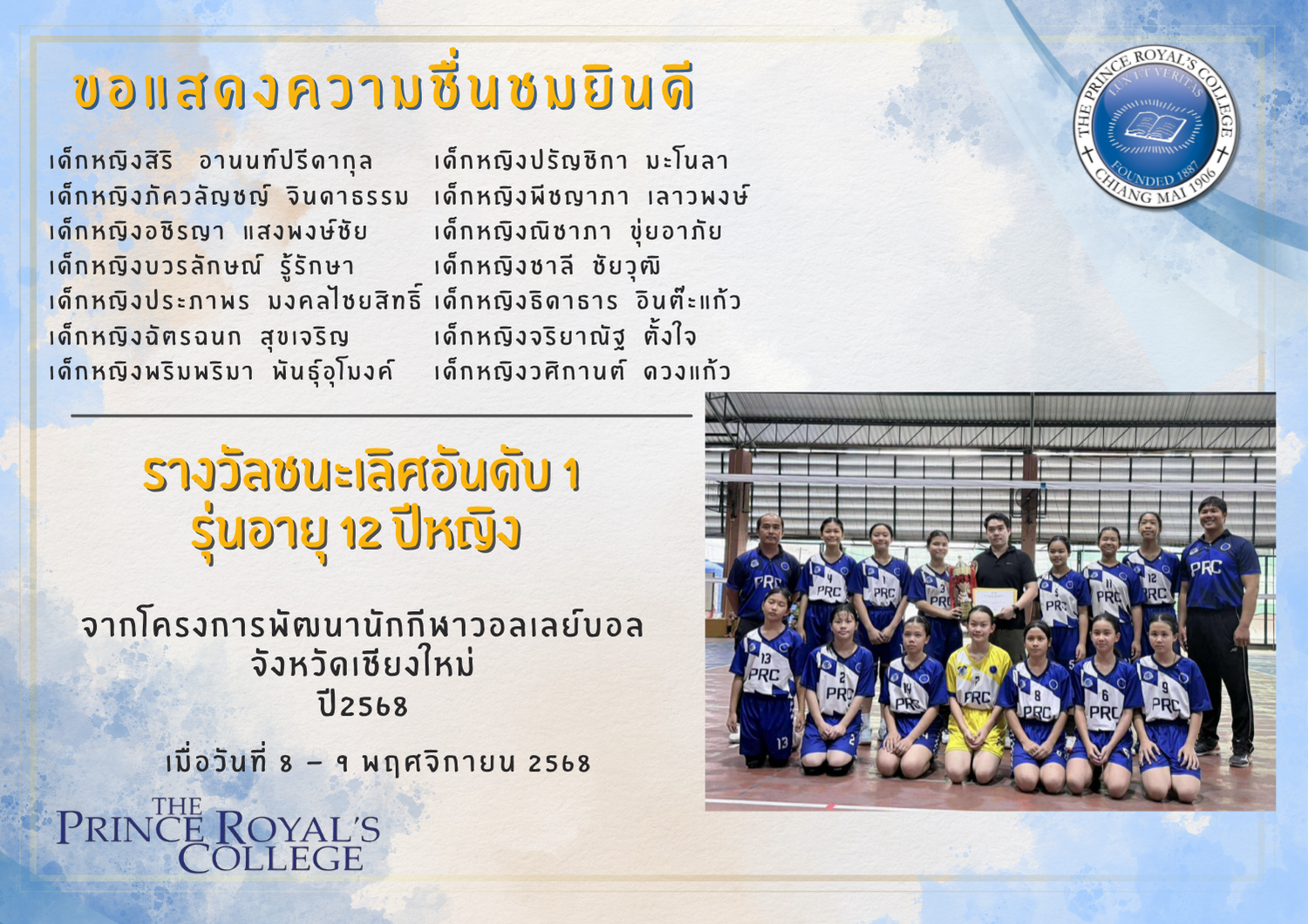 ขอแสดงความยินดีกับทีมVolleyball PRC รุ่นอายุ 12 ปี
