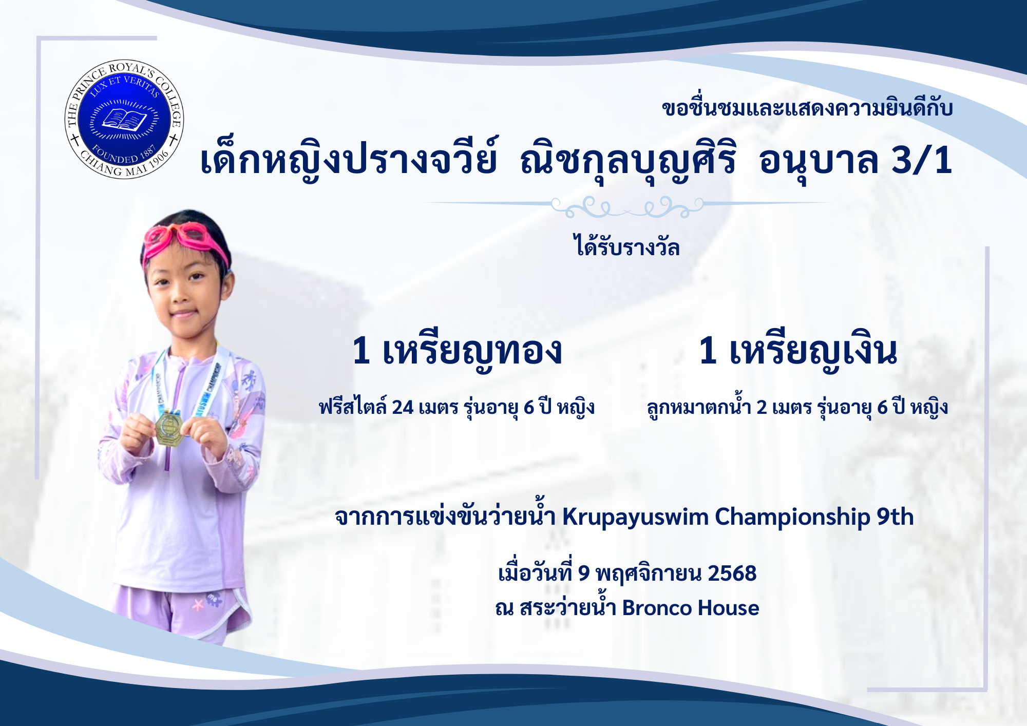 เมื่อวันที่ 9 พฤศจิกายน 2568 ณ สระว่ายน้ำ Bronco House