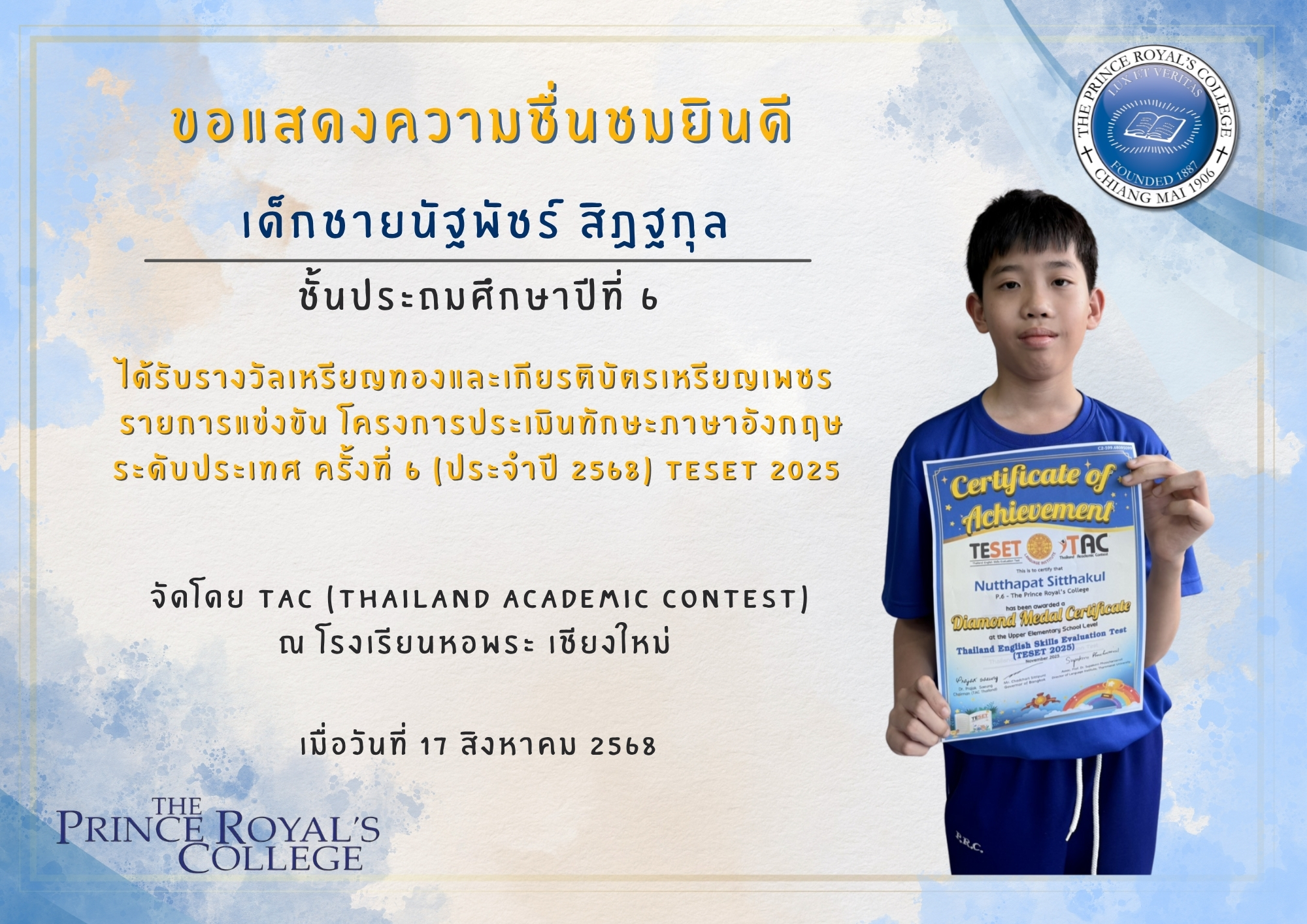 รายการแข่งขัน โครงการประเมินทักษะภาษาอังกฤษ ระดับประเทศ ครั้งที่ 6 (ประจําปี 2568) TESET 2025