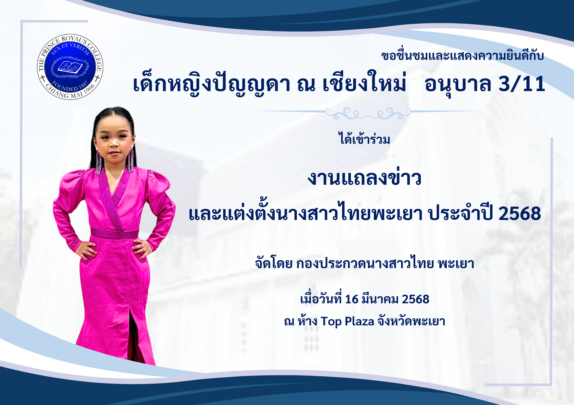 ขอชื่นชมและแสดงความยินดีกับ เด็กหญิงปัญญดา ณ เชียงใหม่