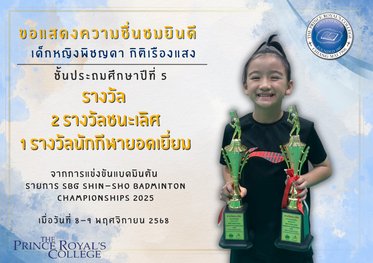 ขอแสดงความยินดีกับเด็กหญิงพิชญดา กิติเรืองแสง นักเรียนระดับชั้นประถมศึกษาปีที่ 5