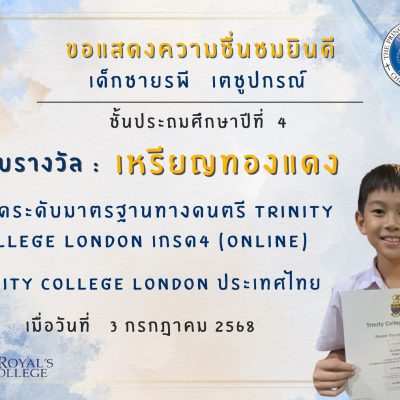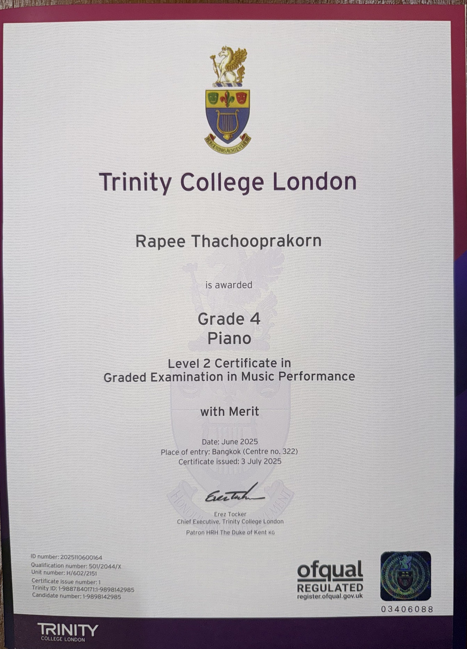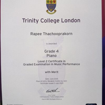 สอบวัดระดับมาตรฐานทางดนตรี Trinity College London เกรด4 (online)