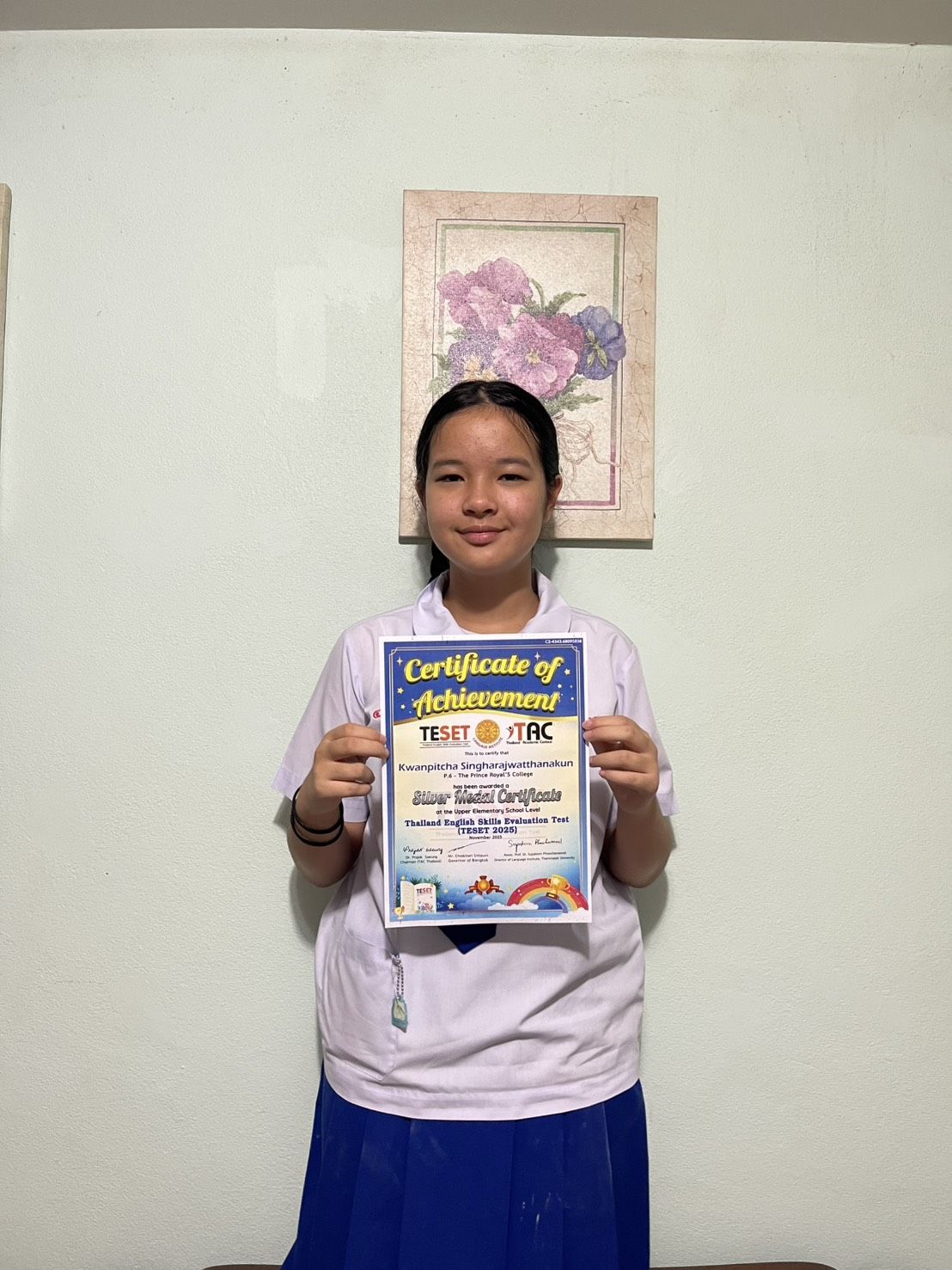 ขอชื่นชมและแสดงความยินดีกับ เด็กหญิงขวัญพิชญ์ชา สิงหราชวัฒนกุล ชั้น ป.6/4
