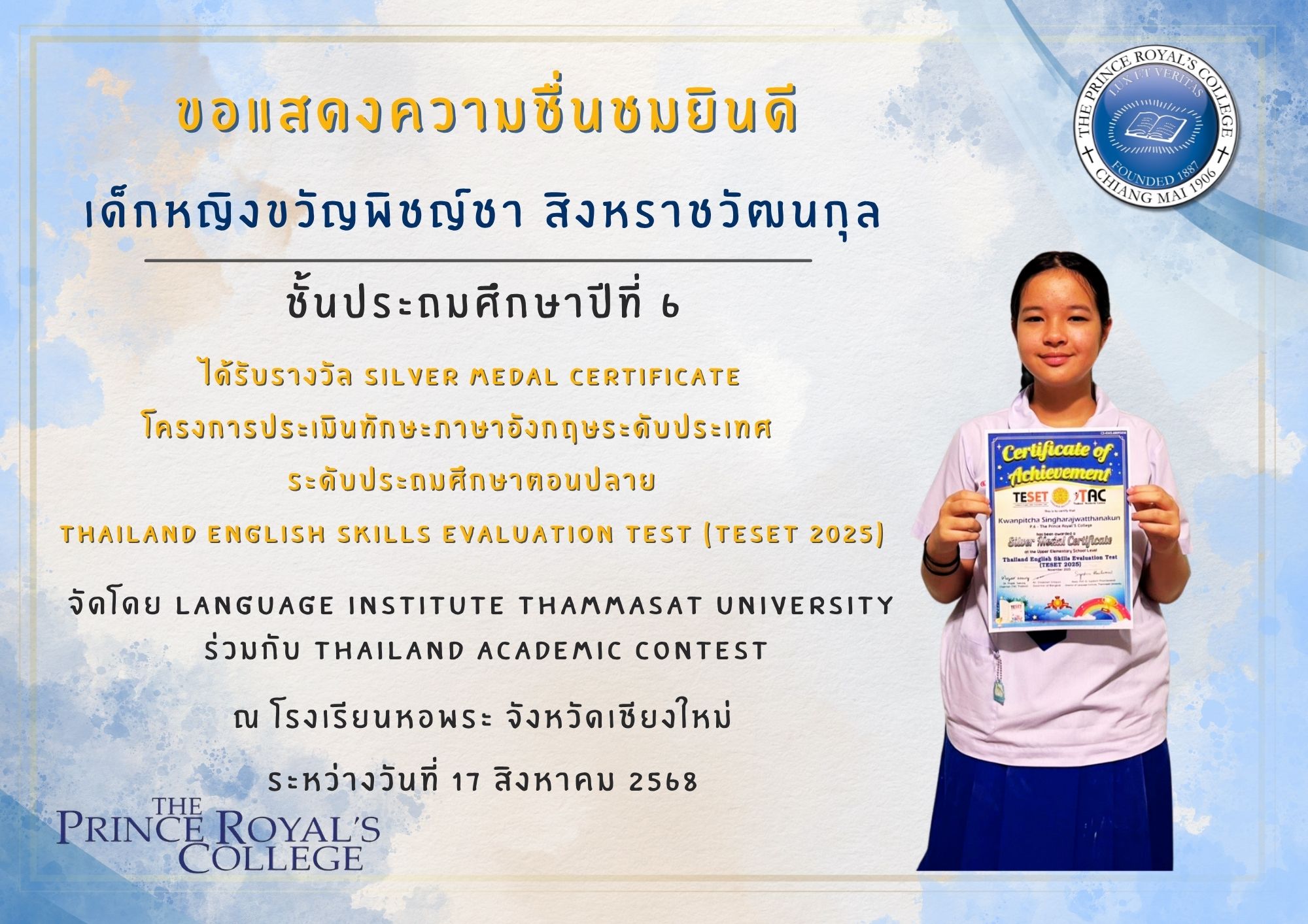 ที่ได้รับรางวัล 1Silver Medal Certificate