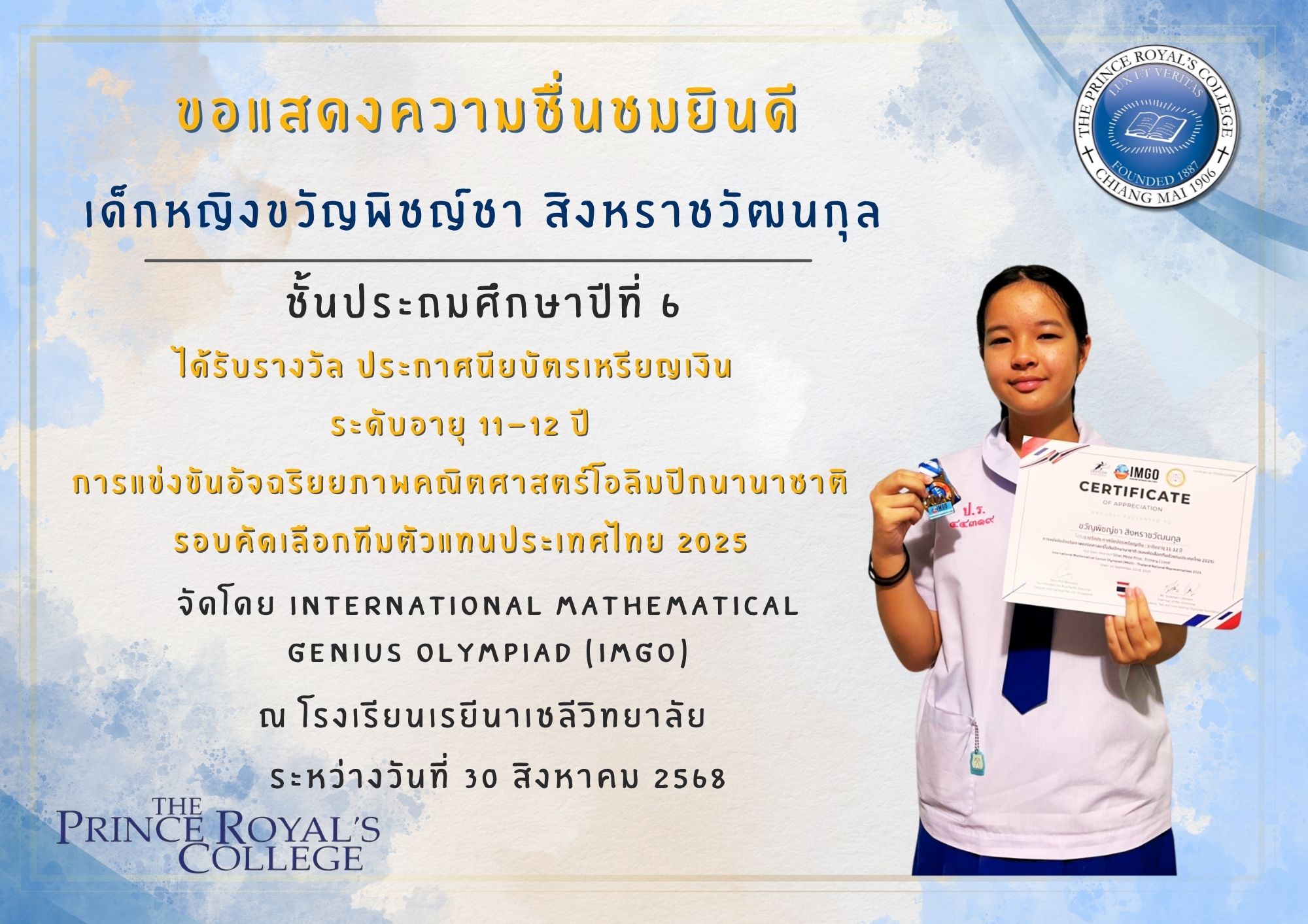 ที่ได้รับรางวัล ประกาศนียบัตรเหรียญเงิน ระดับอายุ 11-12 ปี