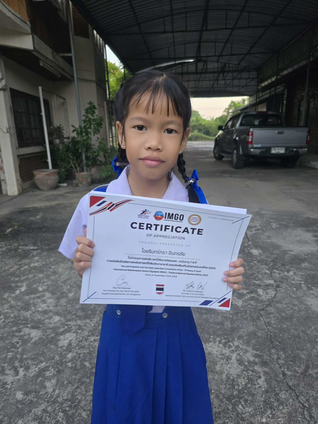 ขอชื่นชมและแสดงความยินดีกับ เด็กหญิงไอยรินทร์ทรา อินทรชัย ชั้นประถมศึกษาปีที่ 2/6