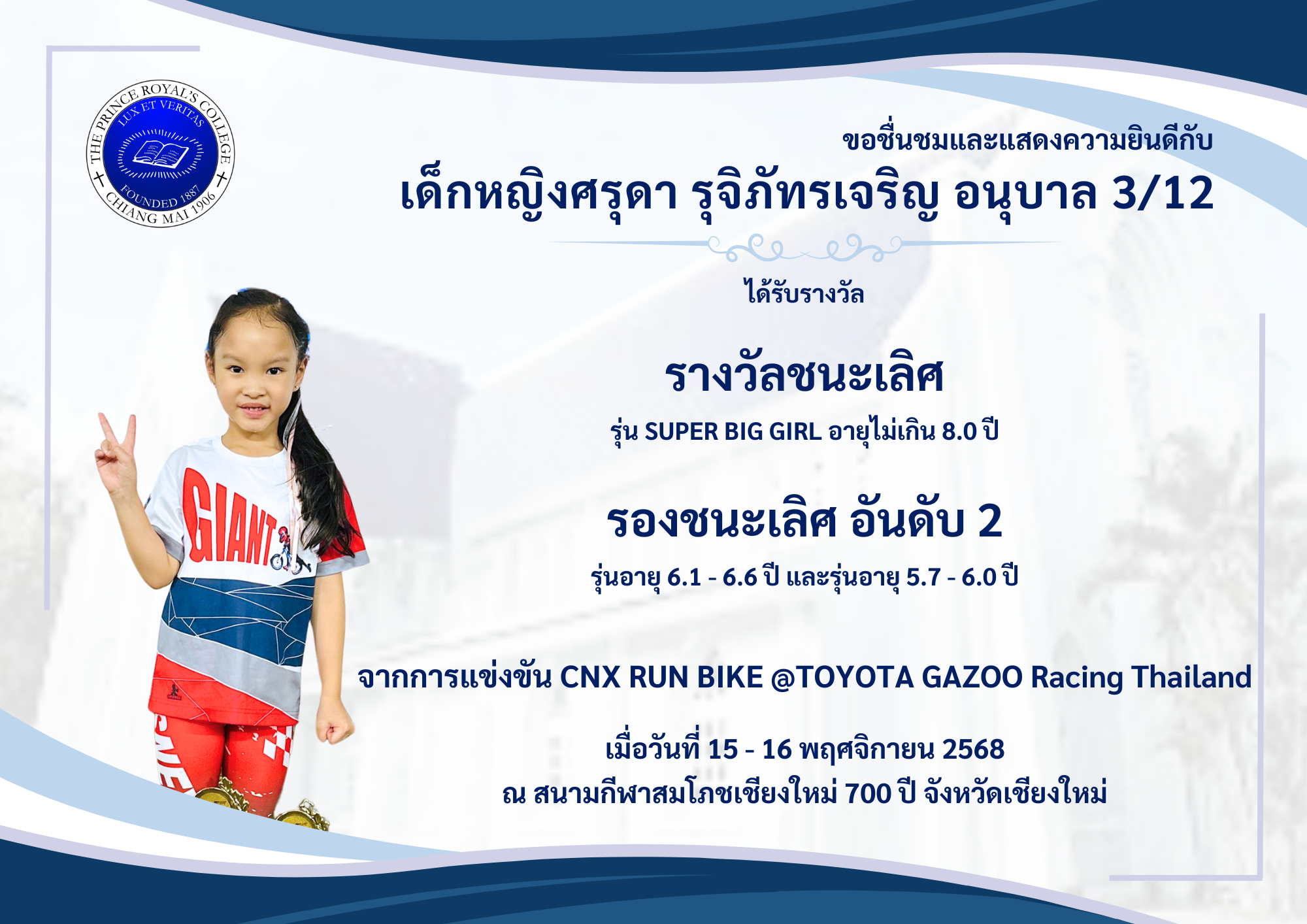 เมื่อวันที่ 15 – 16 พฤศจิกายน 2568   ณ สนามกีฬาสมโภชเชียงใหม่ 700 ปี จังหวัดเชียงใหม่