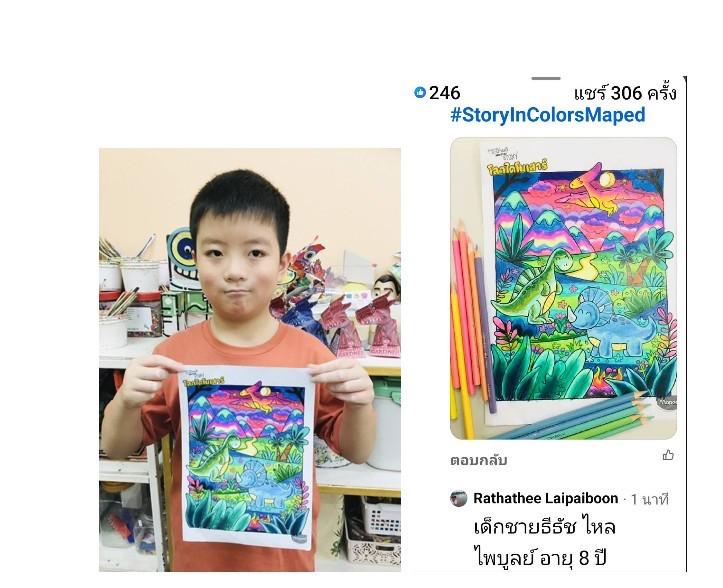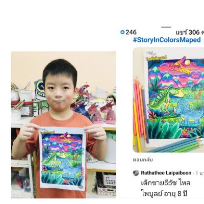 เด็กชายธีธัช ไหลไพบูลย ชั้นประถมศึกษาปีที่ 2/1 ได้รางวัลการประกวดระบายสีในกิจกรรม ” Story in Colors Maped ” “โลกในฝันที่ฉันอยากไป”การแข่งขันเติมเรื่องราวและสีสันให้  “โลกในฝันที่ฉันอยากไป”