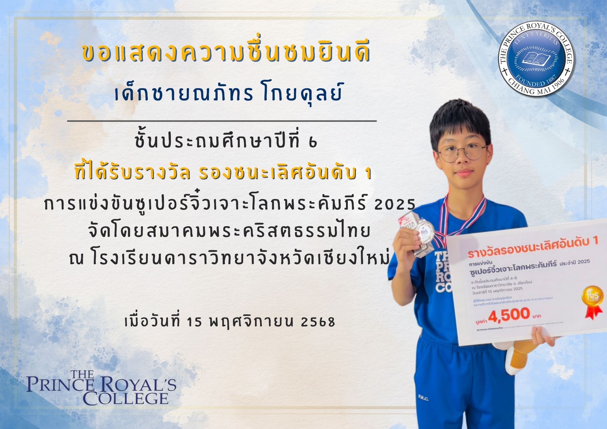 ขอแสดงความชื่นชมยินดีกับเด็กชายณภัทร โกยดุลย์ นักเรียนชั้นประถมศึกษาปีที่ 6