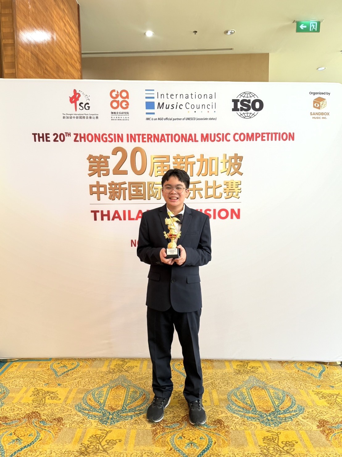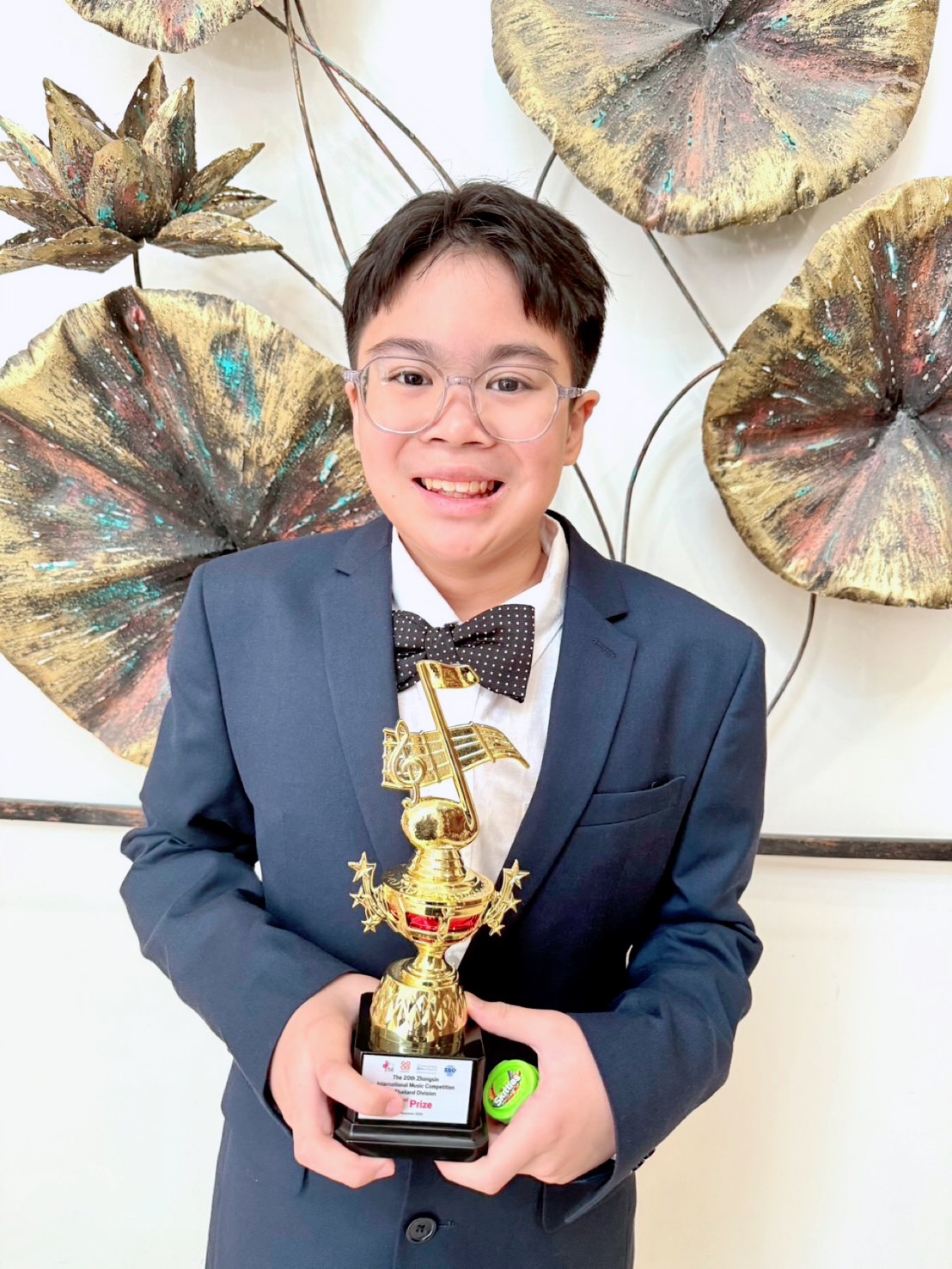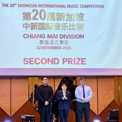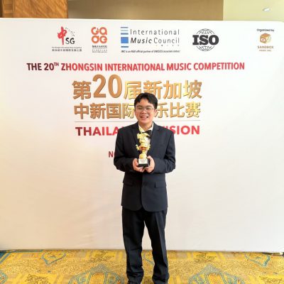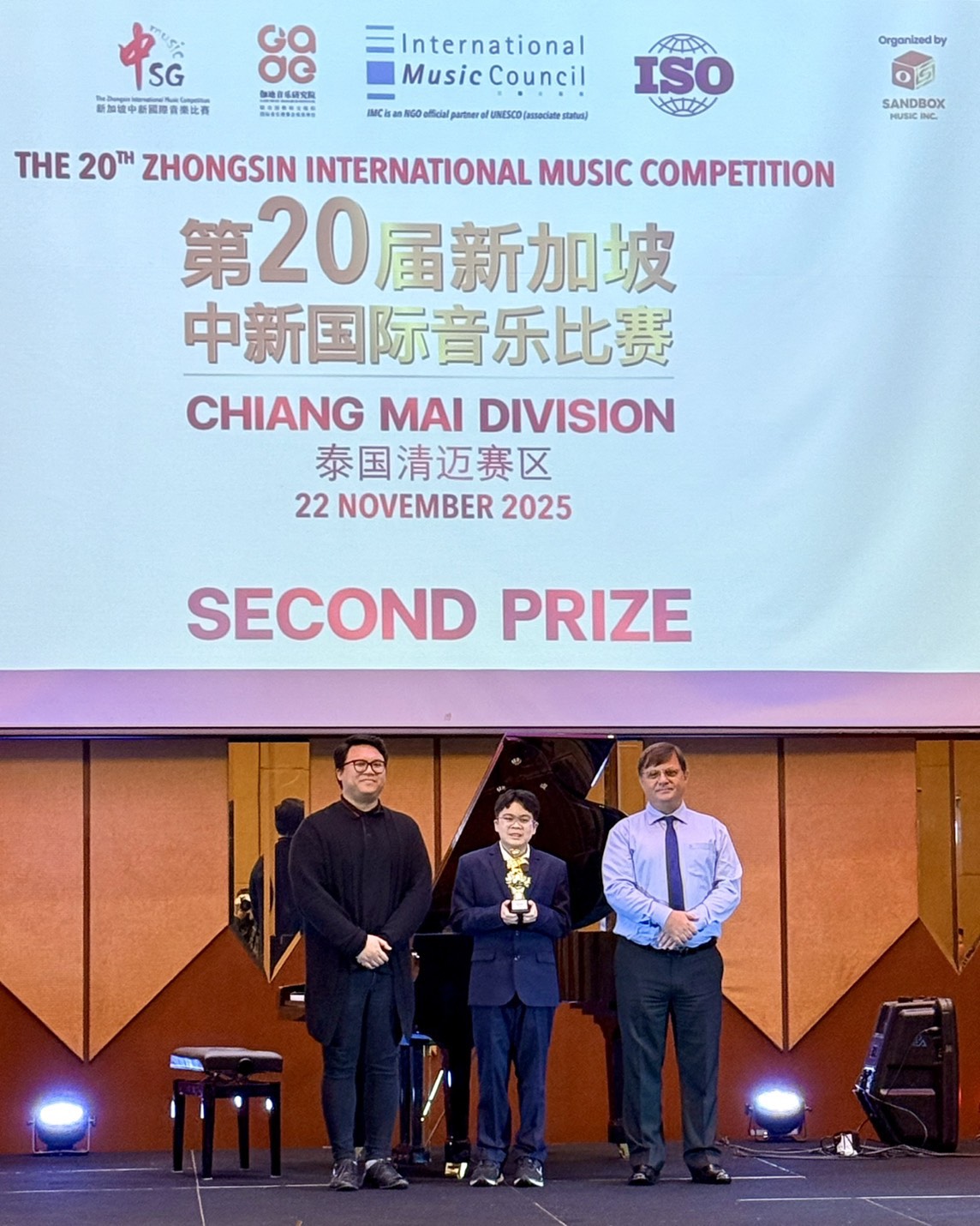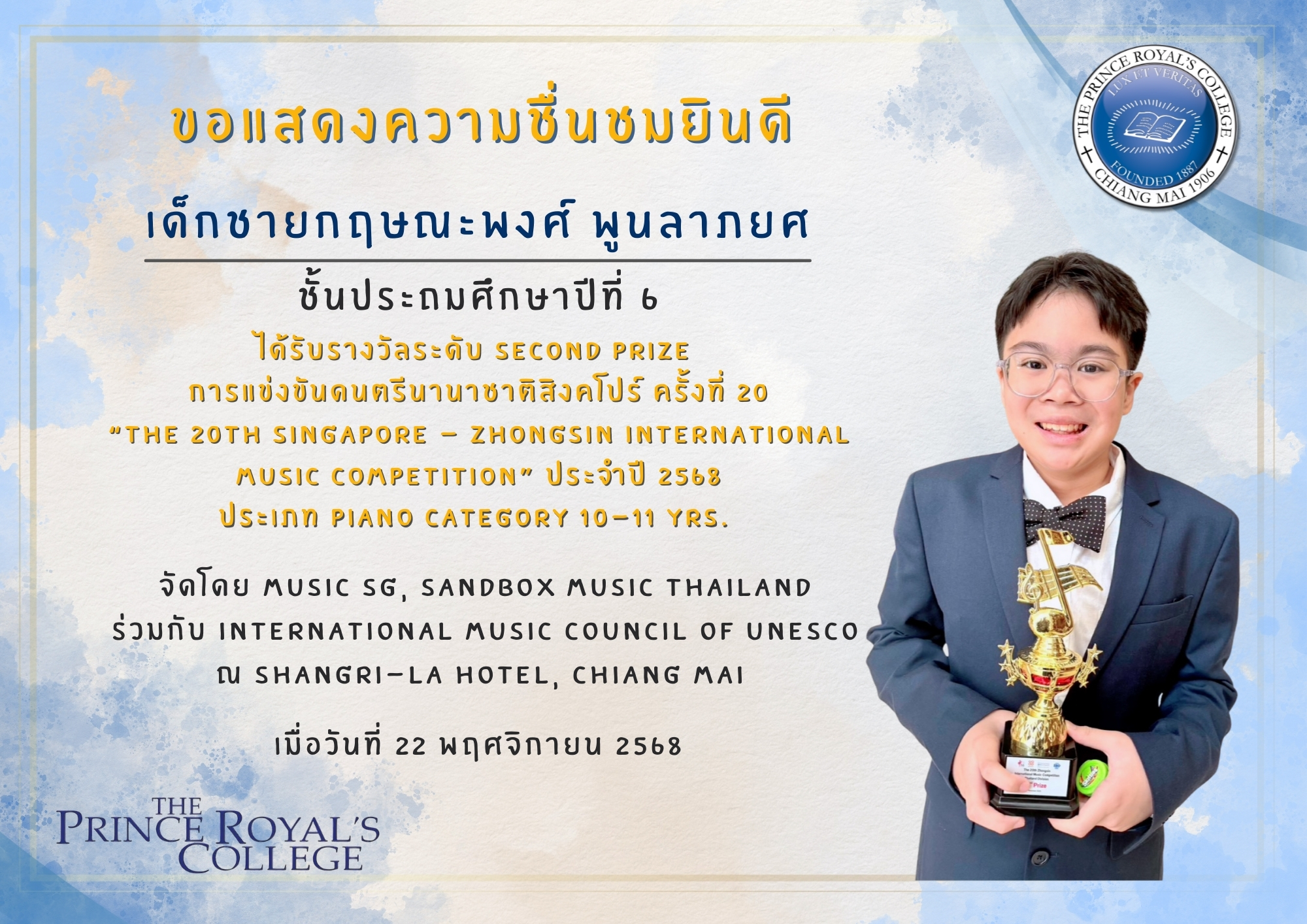ได้รับรางวัลระดับ SECOND PRIZE การแข่งขันดนตรีนานาชาติสิงคโปร์ ครั้งที่ 20 “The 20th Singapore – Zhongsin International Music Competition” ประจำปี 2568 ประเภท Piano Category 10-11 yrs.(ระดับนานาชาติ)