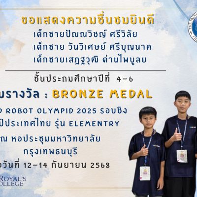 รางวัล Bronze Medal : World Robot Olympid 2025 รอบชิงแชมป์ประเทศไทย รุ่น Elementry