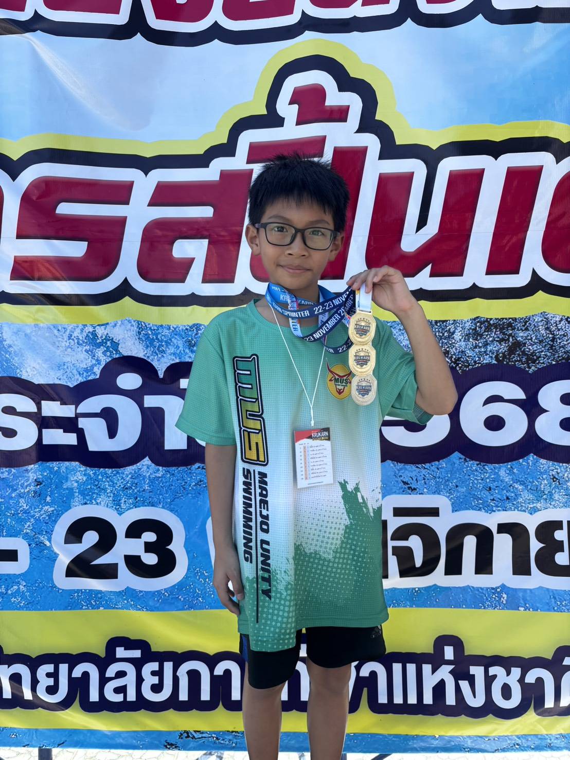 ได้รับรางวัล 3 เหรียญทอง ท่ากบ 25 เมตร และ 50 เมตร, เตะเท้าฟรีสไตล์ 25 เมตร