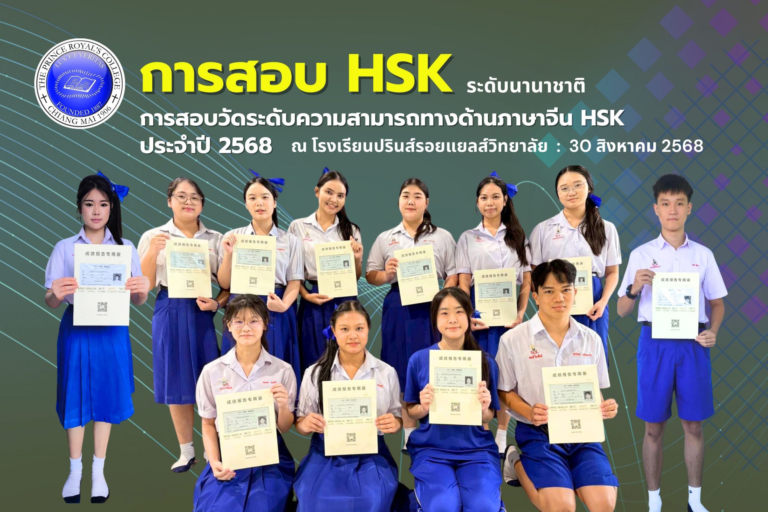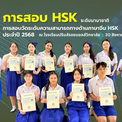 ขอชื่นชมและแสดงความยินดีกับนักเรียนโรงเรียนปรินส์รอยแยลส์วิทยาลัย ที่สอบผ่าน HSK 4 จากการสอบวัดระดับความรู้ทางด้านภาษาจีน HSK ประจำปี 2568 จัดโดย Center for Language Education And Cooperation of China ณ โรงเรียนปรินส์รอยแยลส์วิทยาลัย สอบเมื่อวันที่ 30 สิงหาคม 2568 (ระดับนานาชาติ)