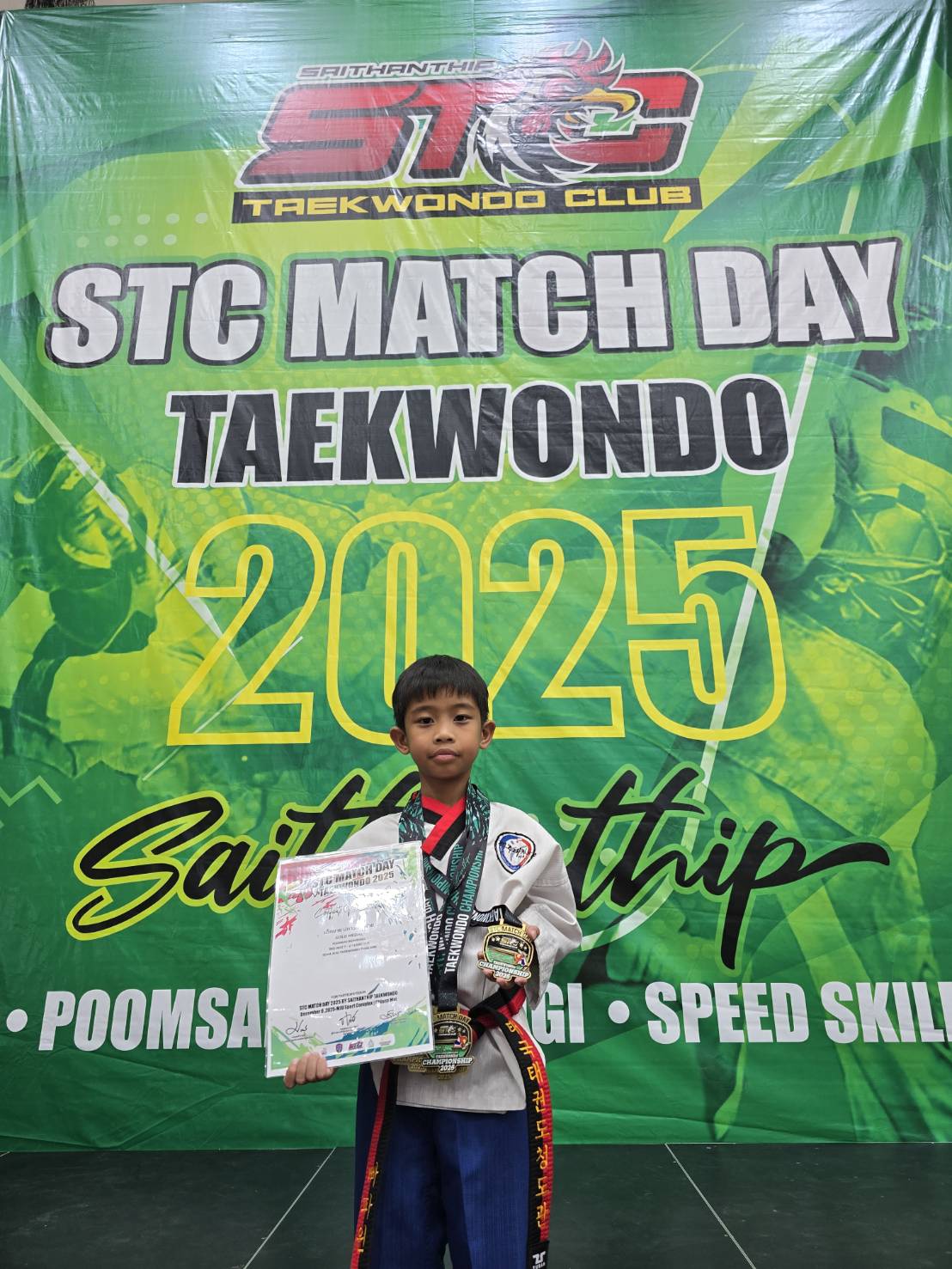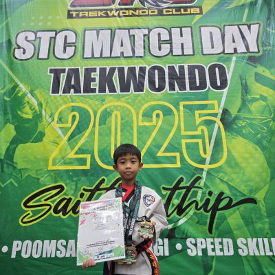 เด็กชายปภาวิน ใจอ้าย ชั้นประถมศึกษาปีที่ 2/1 รางวัล 4 เหรียญทอง การแข่งขันเทควันโด STC MATH DAY Championship 2025