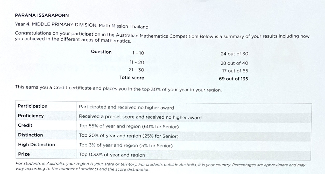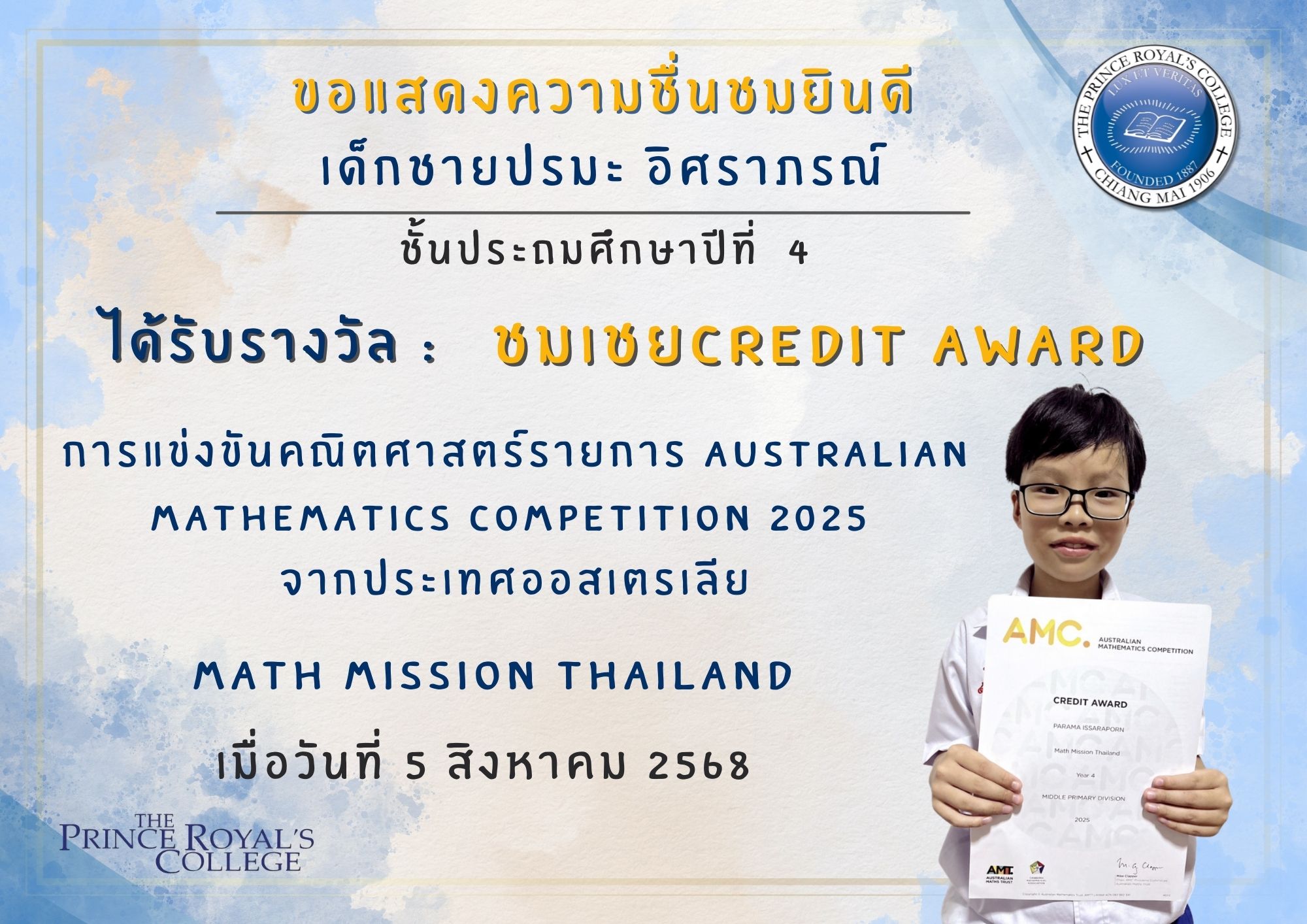 จากการแข่งขัน คณิตศาสตร์รายการ Australian Mathematics Competition 2025 จากประเทศออสเตรเลีย