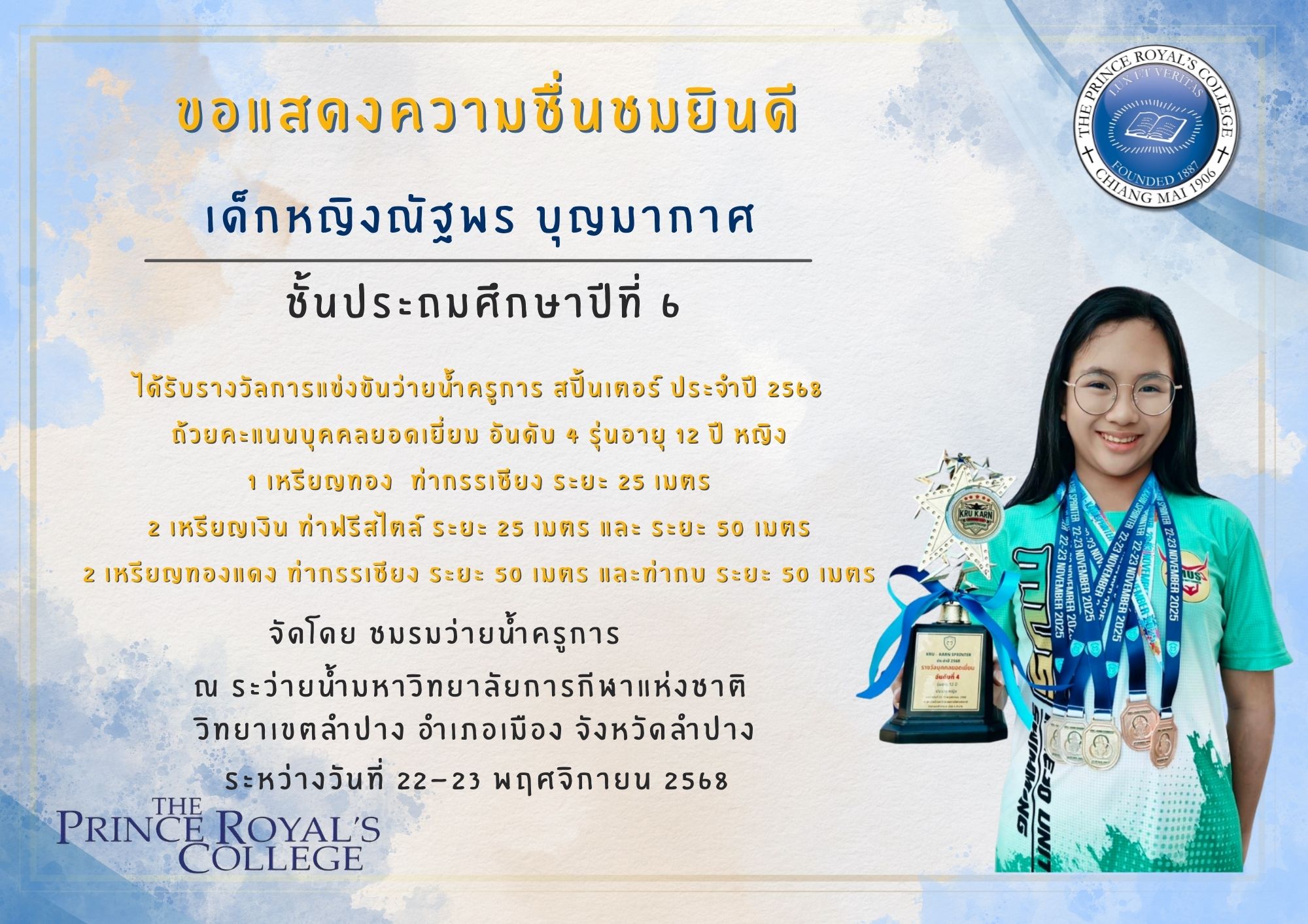จากการแข่งขัน แข่งขันว่ายน้ำครูการ สปิ้นเตอร์ ประจำปี 2568